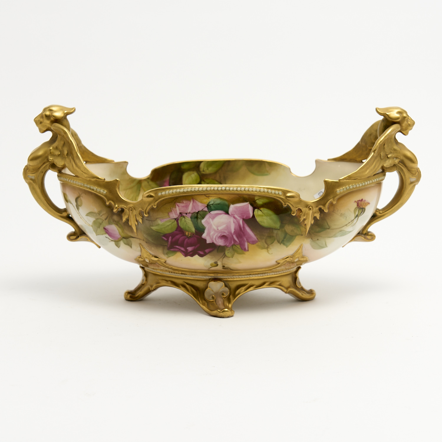 A ROYAL WORCESTER PORCELAIN ROSE DECORATED TWO HANDLED BOWL W.35CM, LEONARD JOEL DELIVERY SIZE: MEDIUM