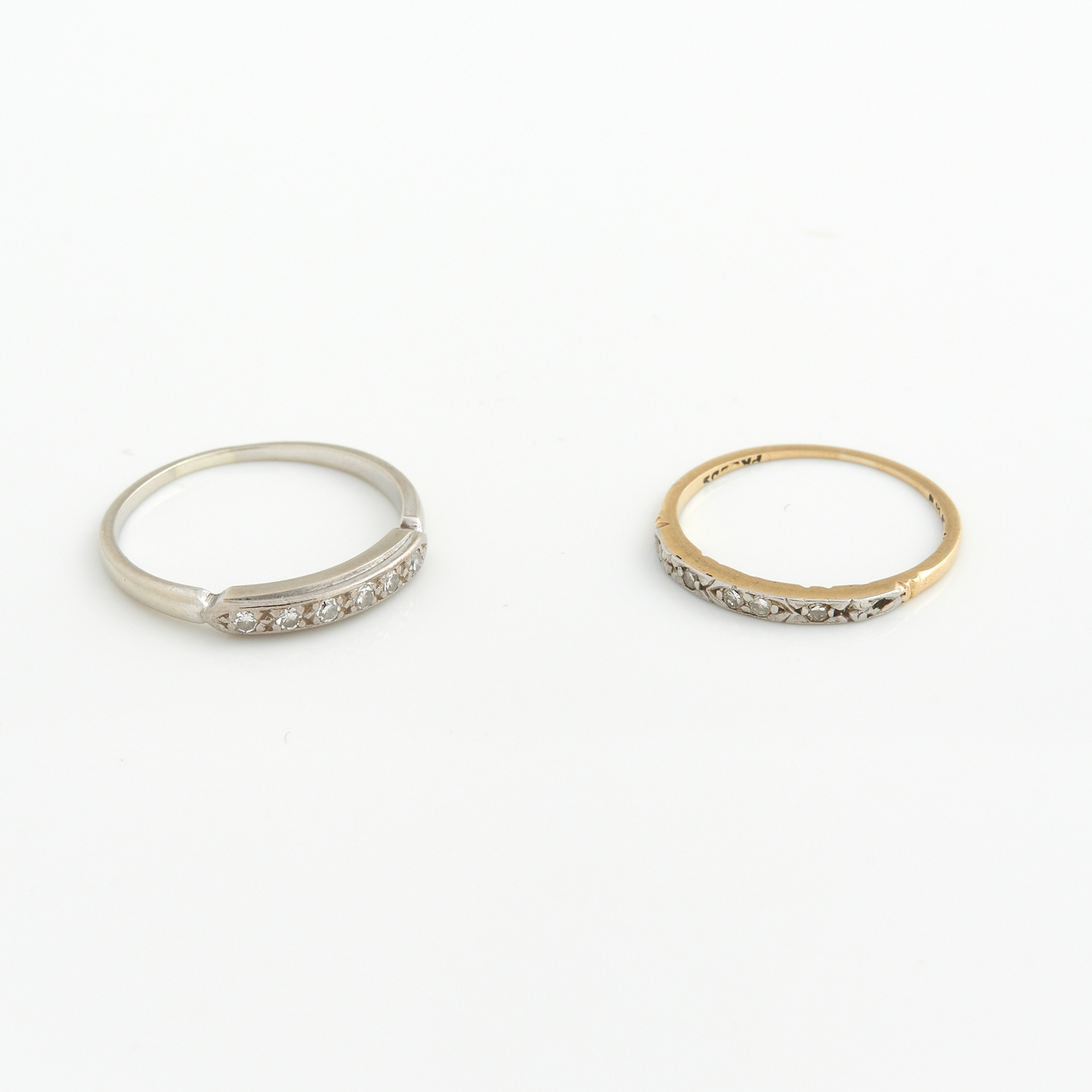 A DIAMOND BAND IN 18CT WHITE GOLD AND PLATINUM, SIZE O TOGETHER WITH A DIAMOND BAND IN 18CT GOLD, SIZE L, 3.2GMS