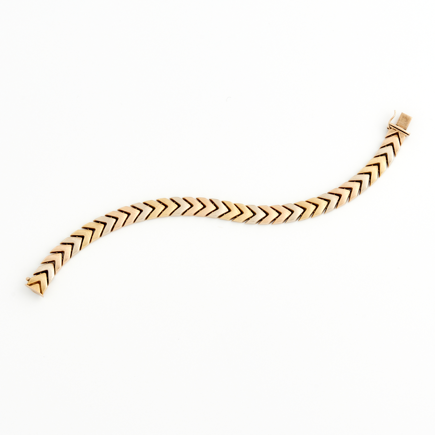 A FANCY LINK BRACELET IN TRI-COLOUR 18CT GOLD, 190MM, 21.3GMS