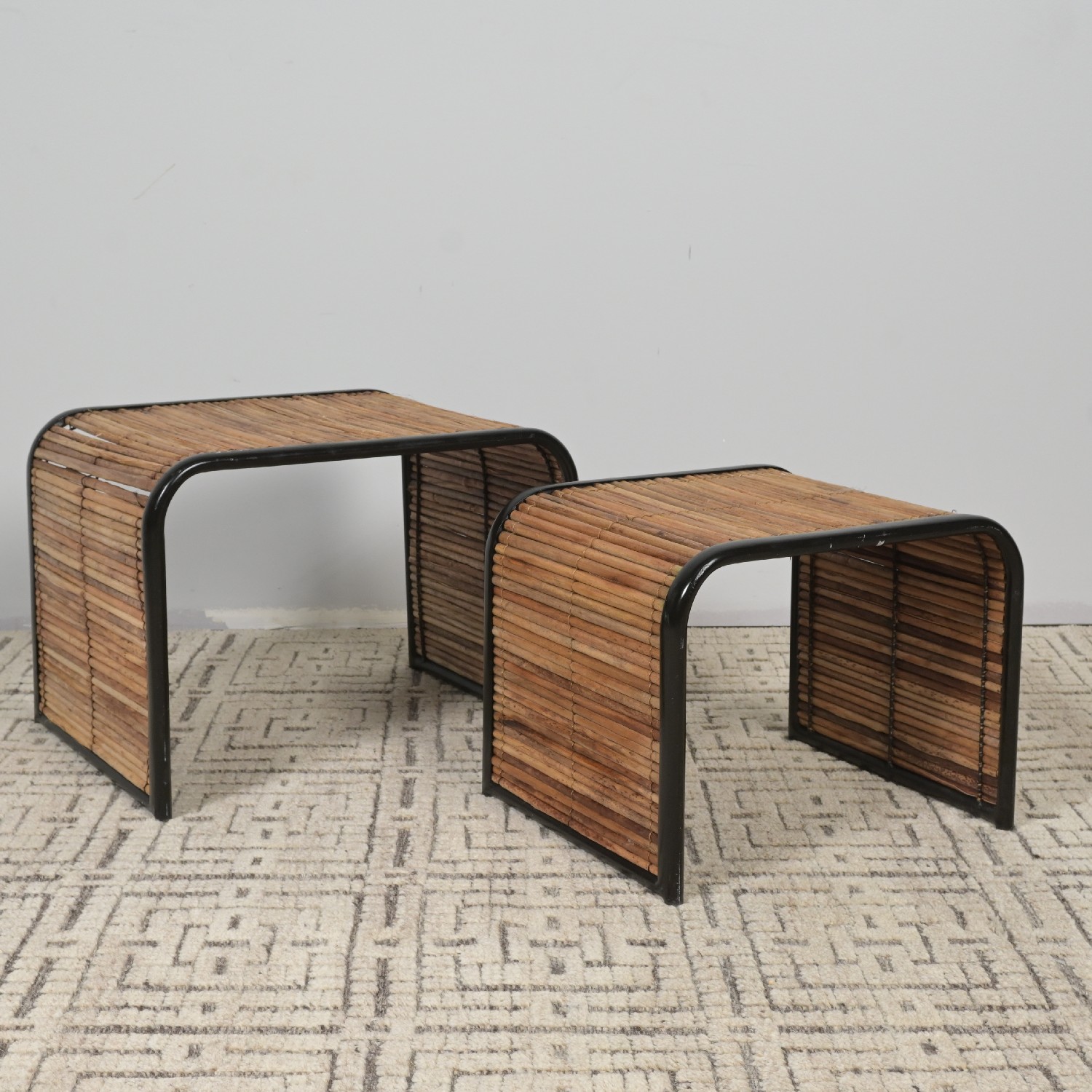 A SET OF TWO CANE NESTING TABLES (41H X 55W X 46D CM) (LEONARD JOEL DELIVERY: LARGE)
