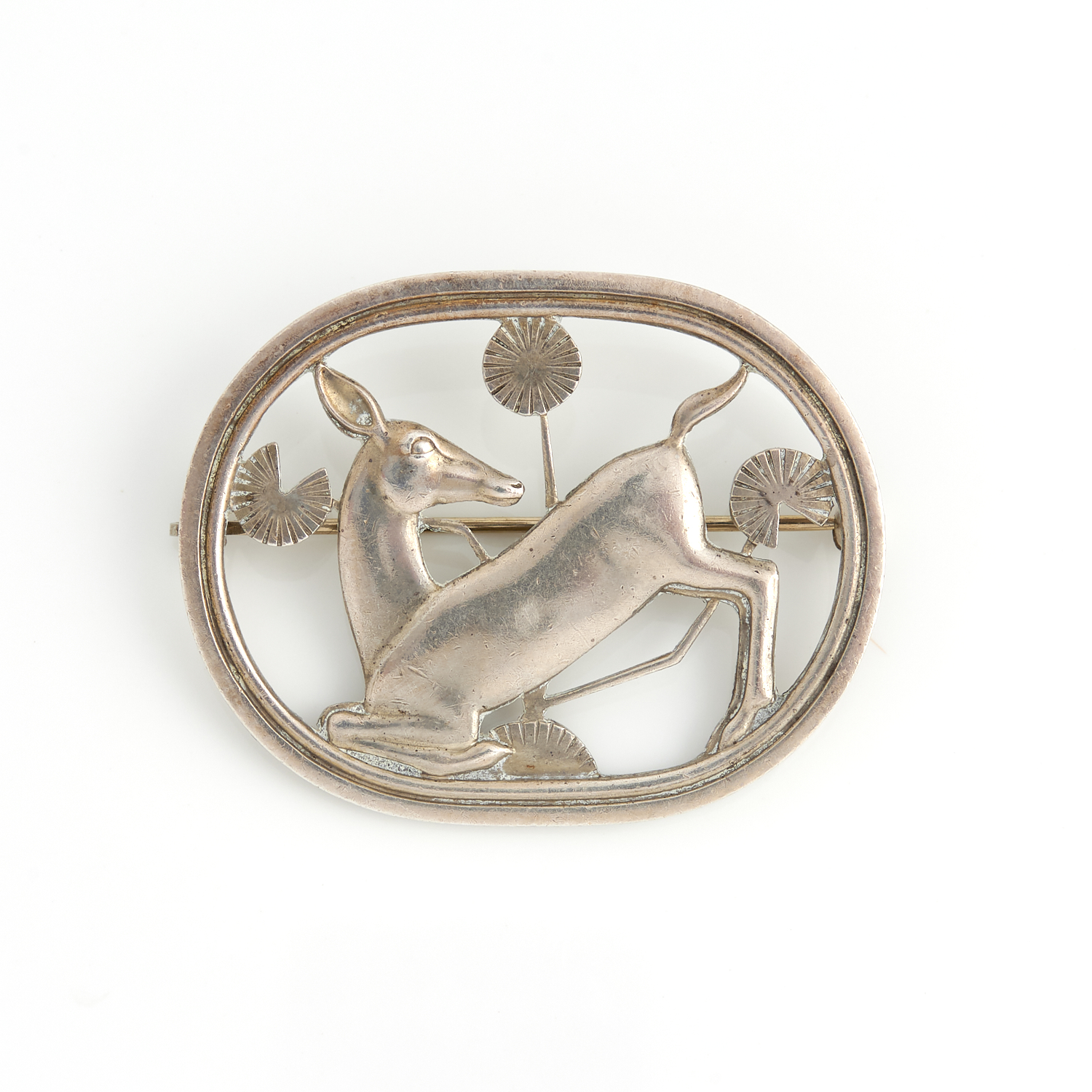 ARNO MALINOWSKI FOR GEORG JENSEN, A 'DEER BROOCH' IN STERLING SILVER, STYLE REFERENCE NO. 256, 35 X 44MM