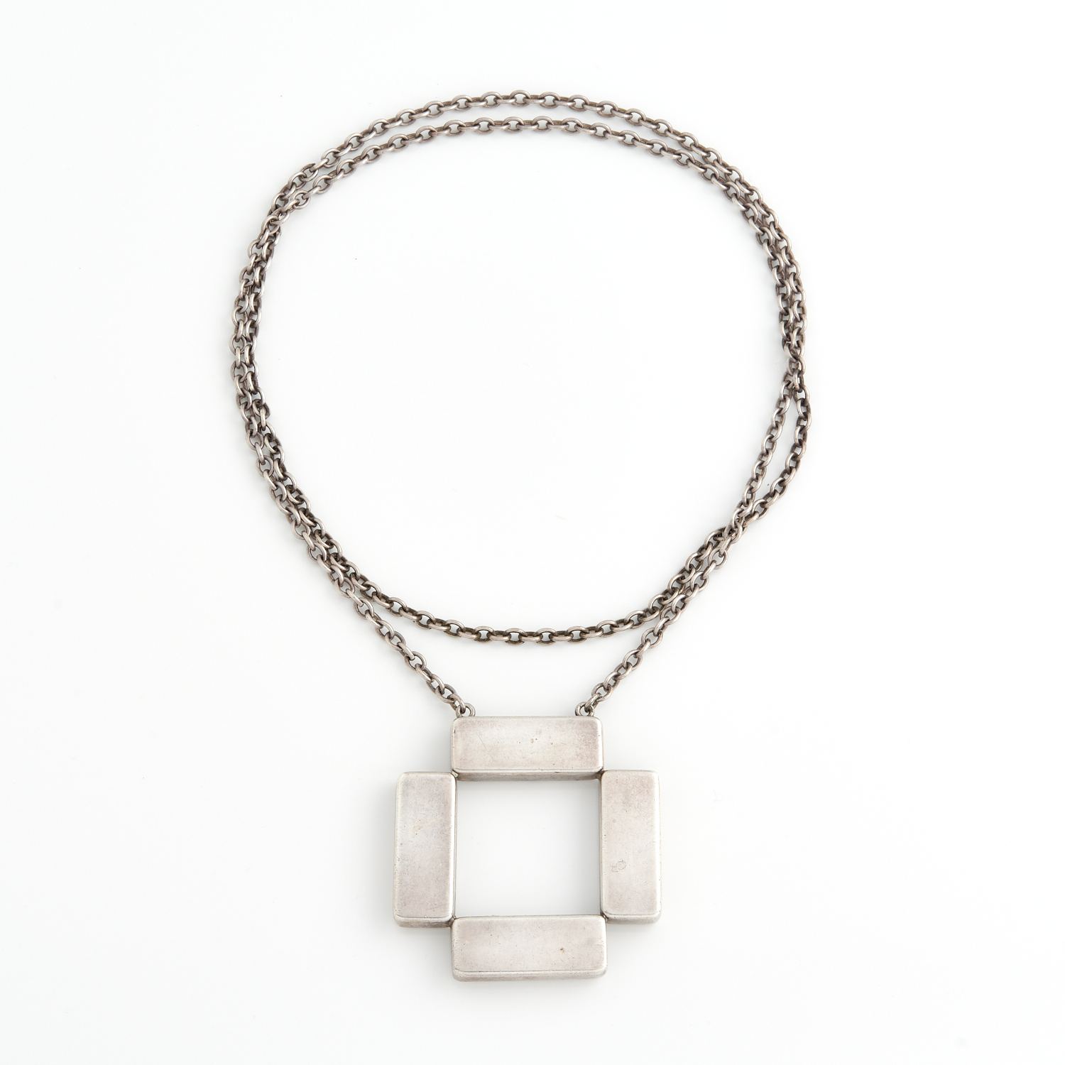 ASTRID FOG FOR GEORG JENSEN, A PEDANT NECKLACE IN STERLING SILVER, STYLE REFERENCE NO. 379, PENDANT DIAMETER 58MM, LENGTH 800MM