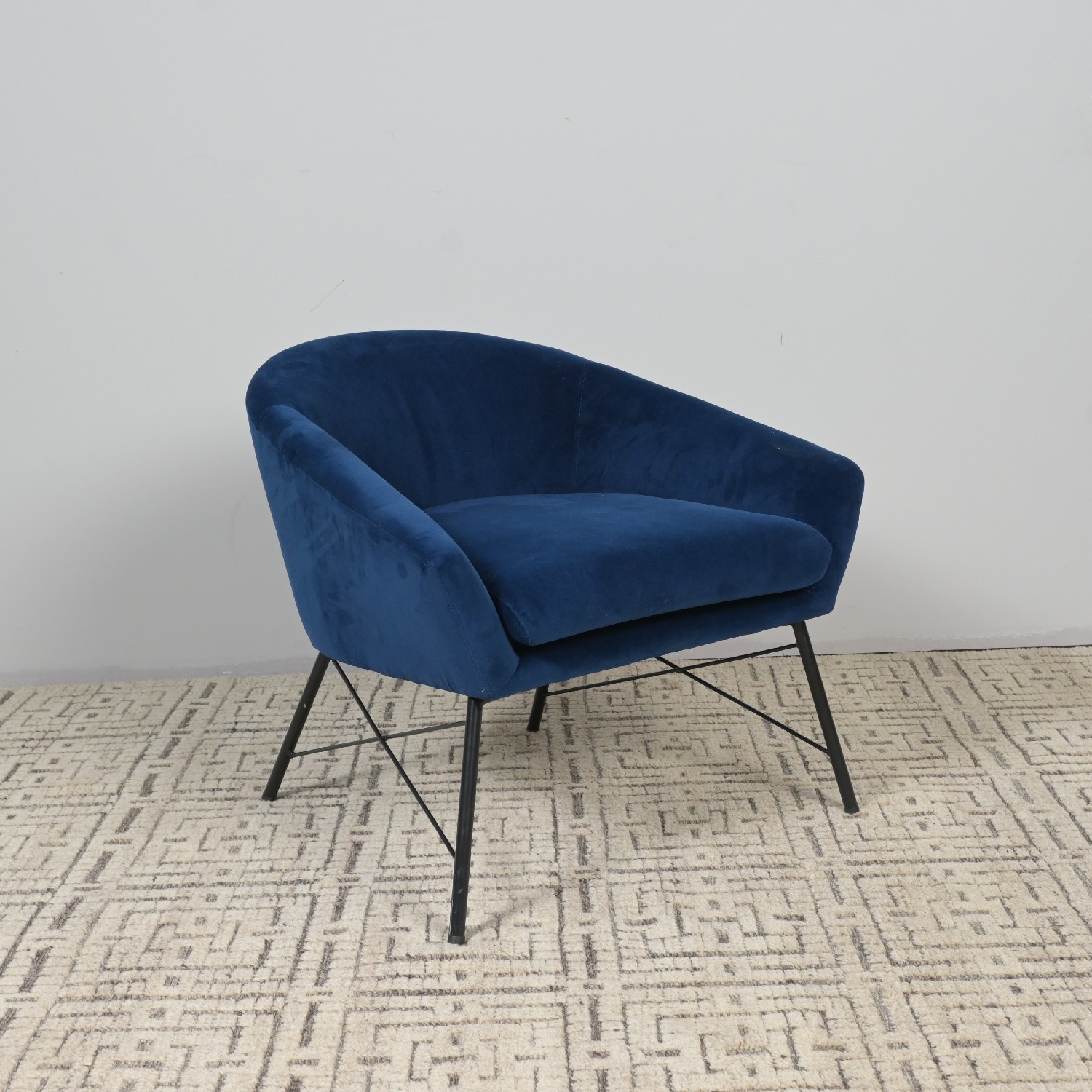 A CONTEMPORARY VELVET UPHOLSTERED CHAIR (66H X 74W X 70D CM) (LEONARD JOEL DELIVERY: LARGE)