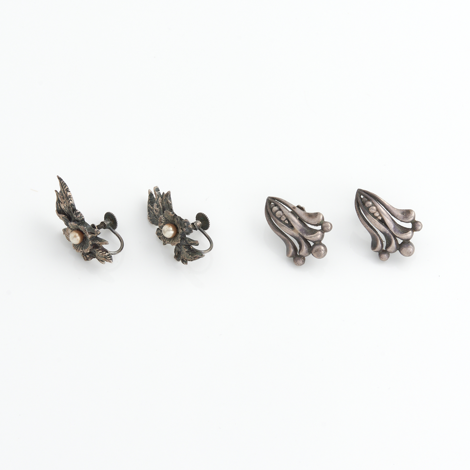 TWO PAIRS OF VINTAGE EARRINGS IN STERLING SILVER, ONE WITH PEARL DETAIL, BOTH TO SCREW BACK FITTINGS