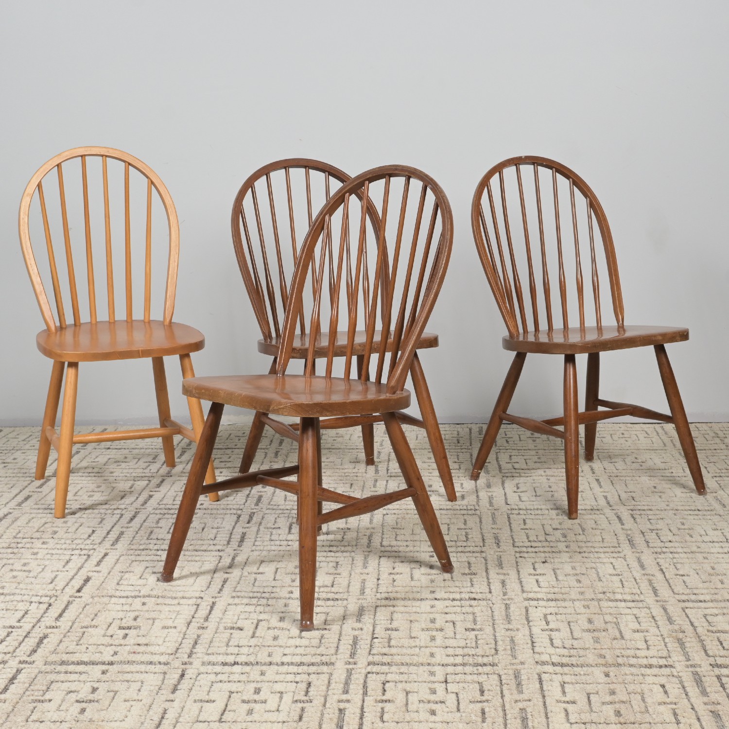 A SET OF FOUR YUGOSLAVIAN SPINDLE BACK DINING CHAIRS (91H X 44W X 45D CM) (LEONARD JOEL DELIVERY: LARGE)