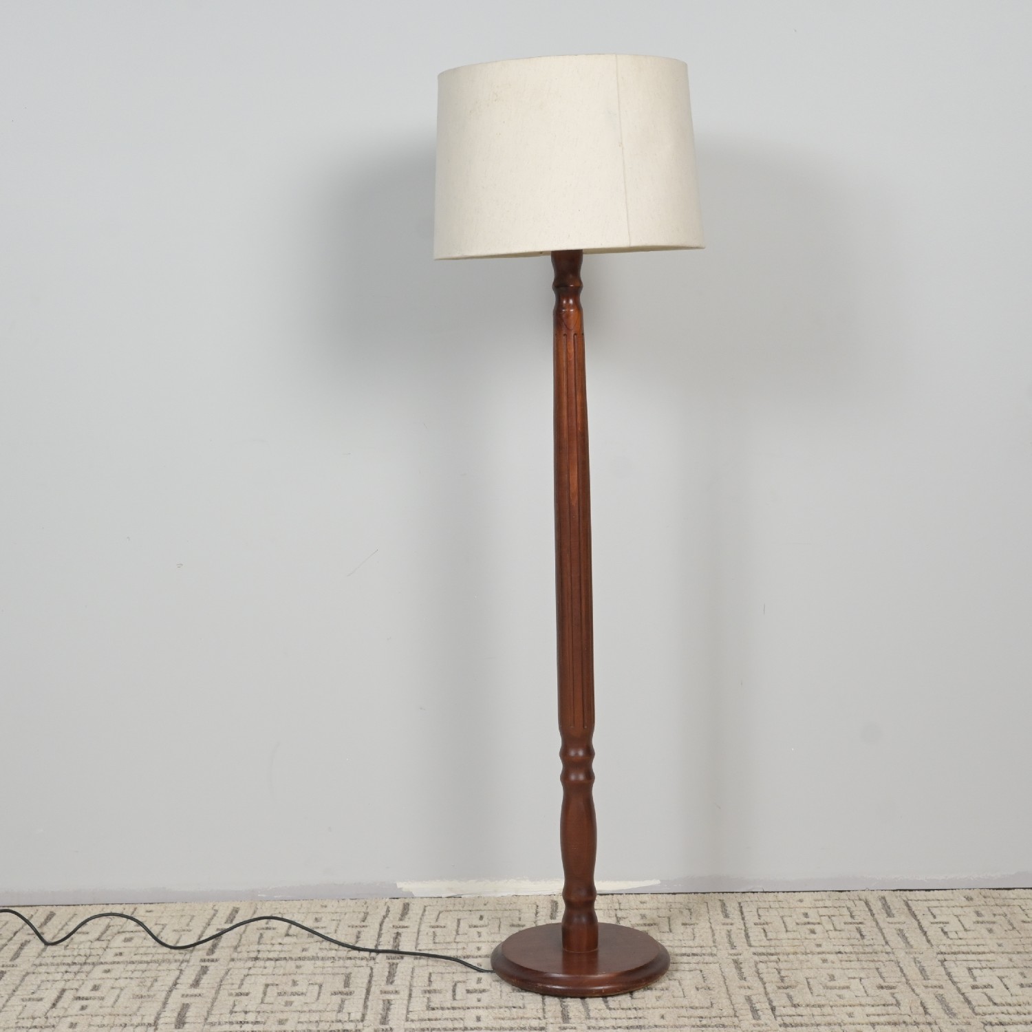 AN EARLY 20TH CENTURY CEDAR STANDARD LAMP WITH SHADE (157H CM) (LEONARD JOEL DELIVERY: LARGE)