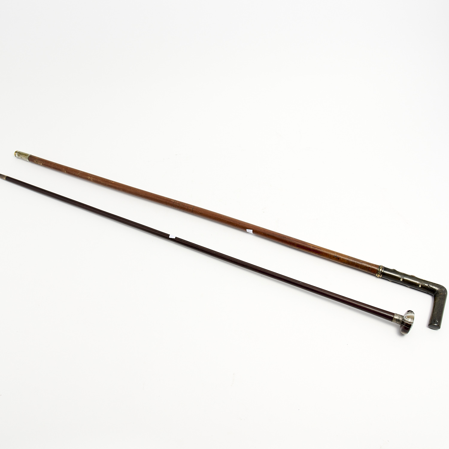 TWO ANTIQUE CANES, ONE WITH A POLISHED AGATE HANDLE, THE OTHER WITH A BONE HANDLE L.93.5CM (LONGEST), LEONARD JOEL DELIVERY SIZE: SMALL