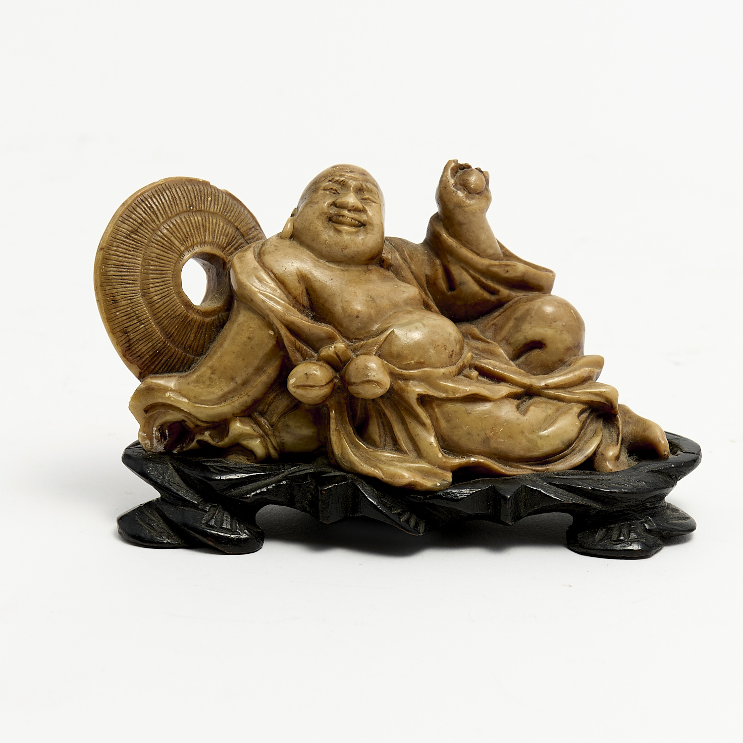 A CHINESE ANTIQUE SOAP STONE RECLINING BUDDHA (A/F) L.13CM, LEONARD JOEL DELIVERY SIZE: SMALL