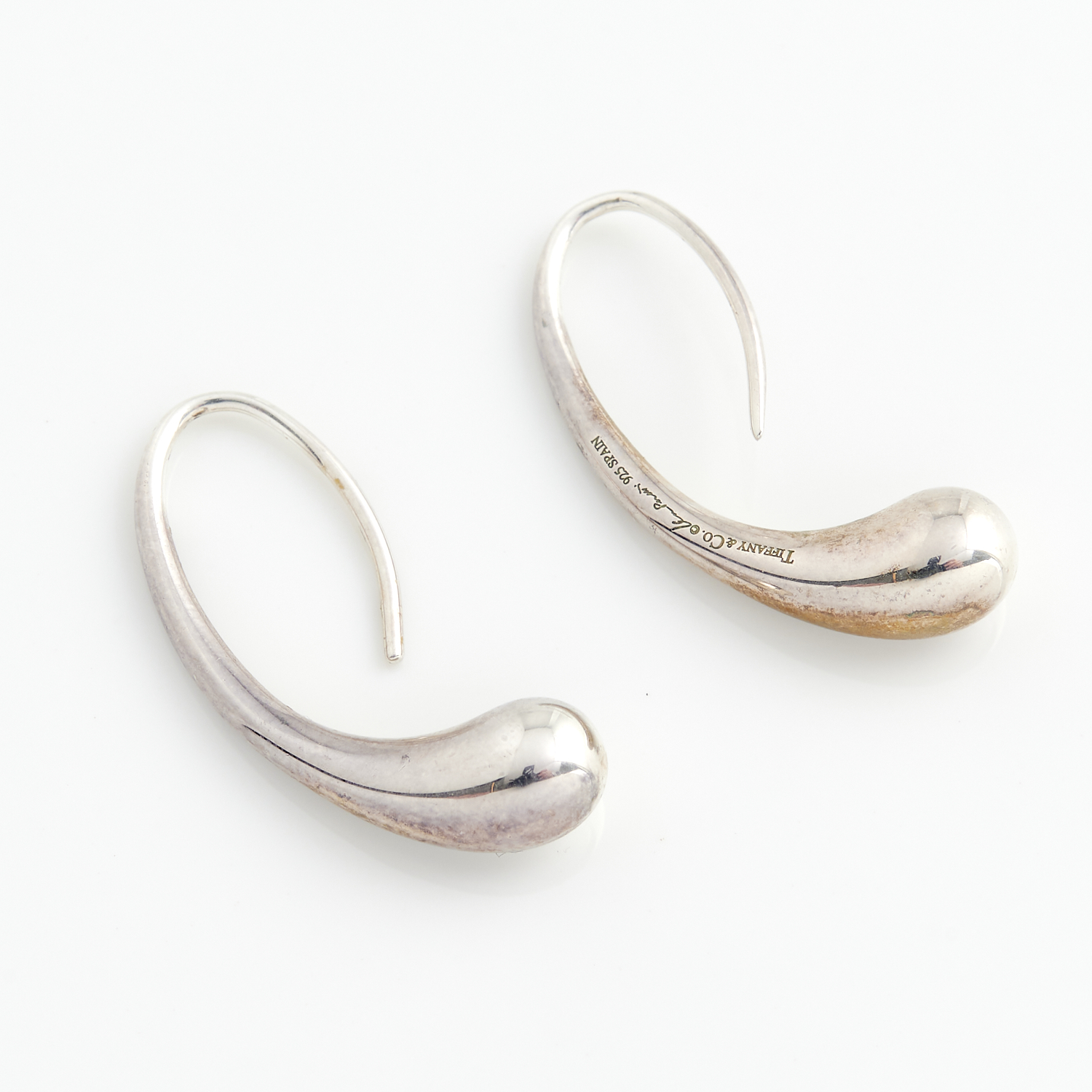 ELSA PERETTI FOR TIFFANY & CO., A PAIR OF EARRINGS, IN STERLING SILVER, TO HOOK FITTINGS, 27MM, ACCOMPANIED BY A POUCH AND BOX