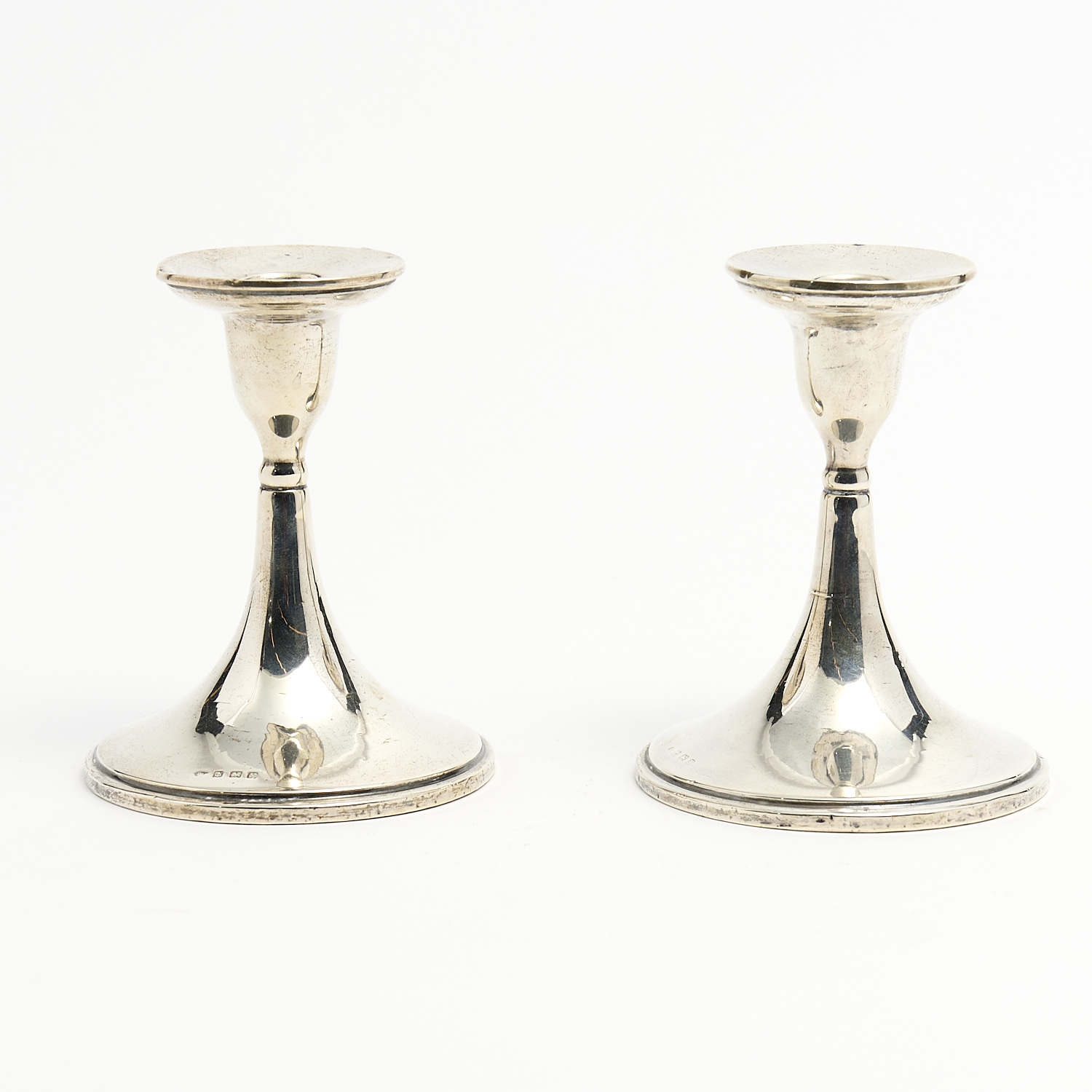 A PAIR OF STERLING SILVER CANDLESTICKS H.14CM (A/F), LEONARD JOEL DELIVERY SIZE: SMALL