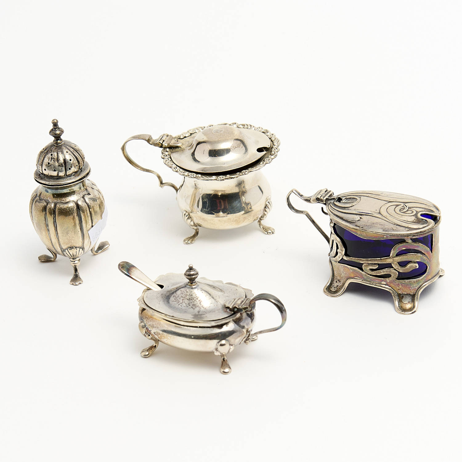 THREE STERLING SILVER CELLARS AND A PEPPERETTE 168G (EXCLUDING LINERS) H.8CM (TALLEST), LEONARD JOEL DELIVERY SIZE: SMALL