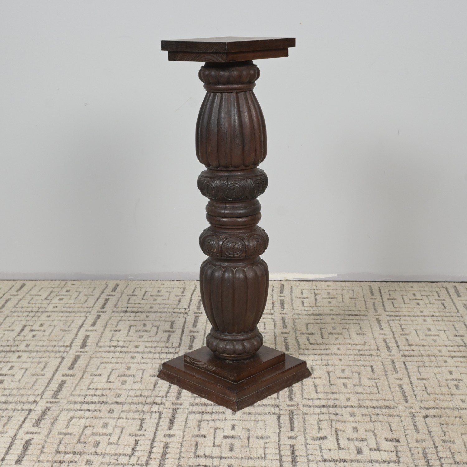 A LARGE HEAVILY CARVED 19TH CENTURY, AUSTRALIAN BLACKWOOD PEDESTAL (96H X 32W X 32D CM) (LEONARD JOEL DELIVERY: X-LARGE)