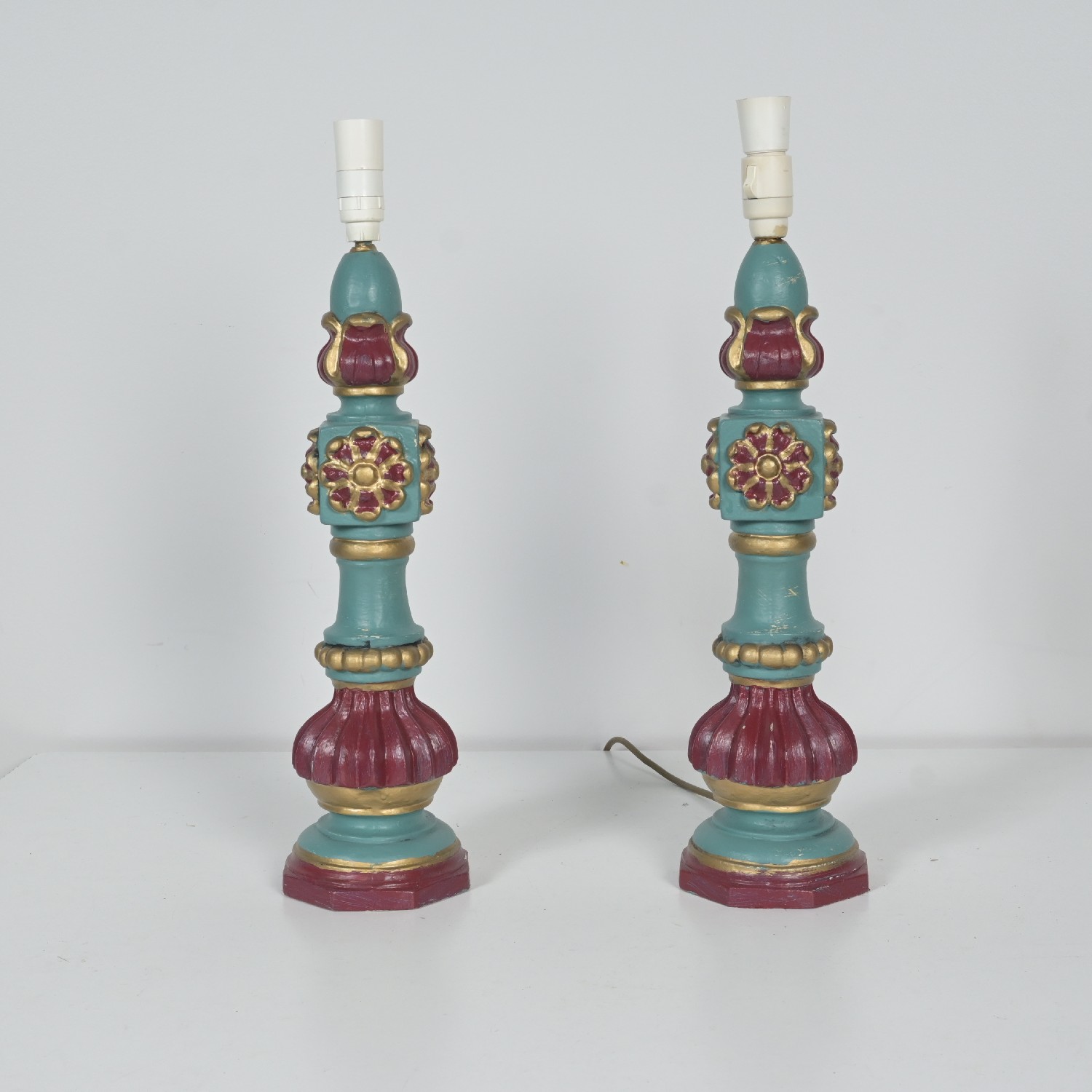 A PAIR OF 19th CENTURY HAND-PAINTED CAST IRON TABLE LAMPS (56H CM) (LEONARD JOEL DELIVERY: LARGE)