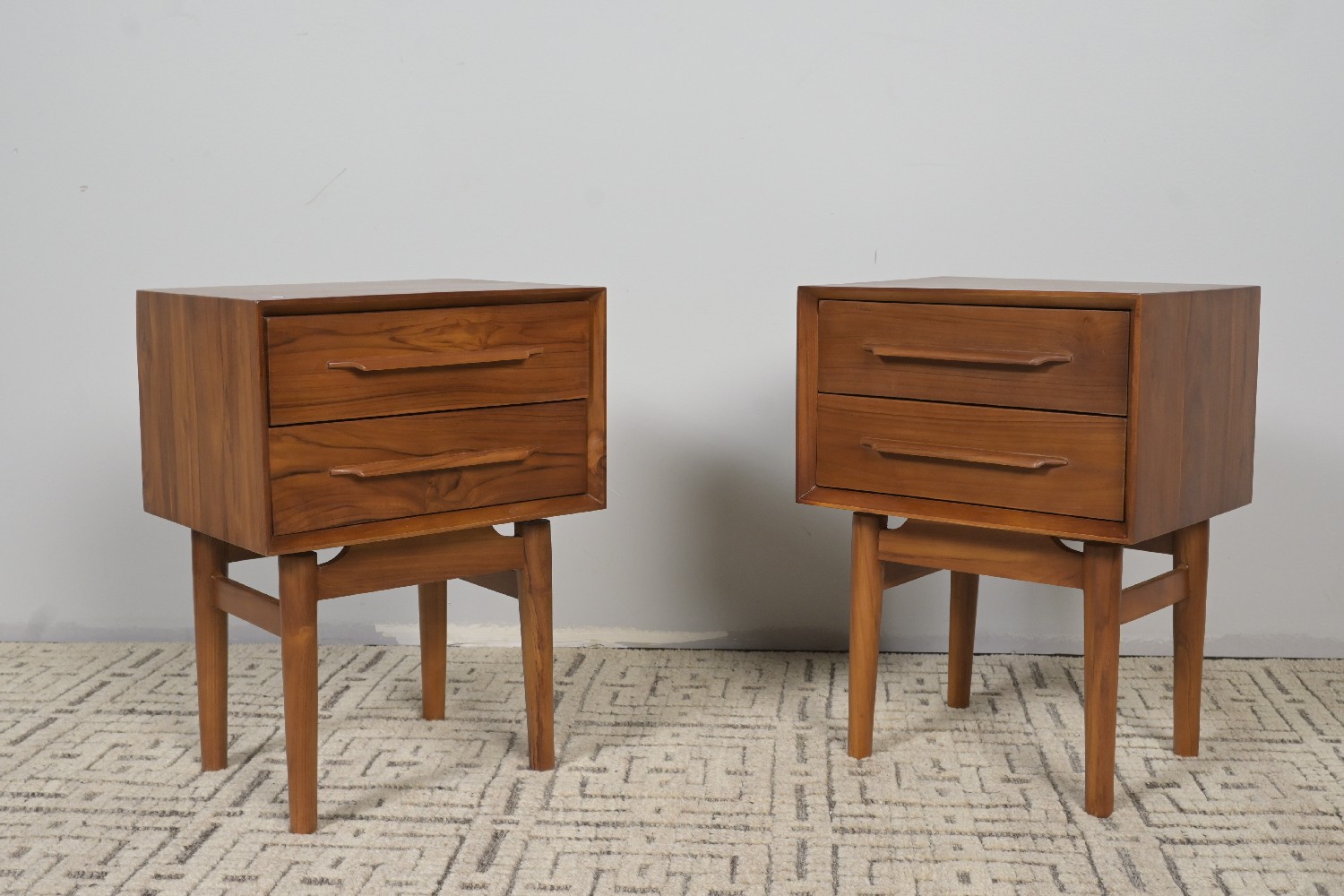 A PAIR OF RETRO TEAK BEDSIDE TABLES (56H X 41W X 33D CM) (LEONARD JOEL DELIVERY: LARGE)