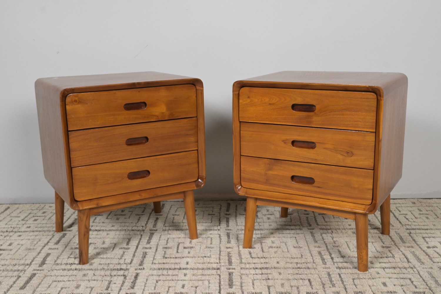 A PAIR OF SOLID TEAK BEDSIDE TABLES (62H X 51W X 40D CM) (LEONARD JOEL DELIVERY: X-LARGE)