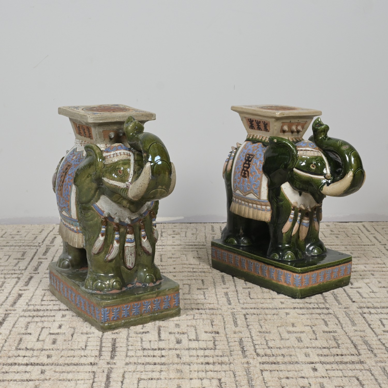 TWO CERAMIC GLAZED ELEPHANT FORM PLANT STANDS (57H X 30W X 52D CM) (LEONARD JOEL DELIVERY: LARGE)