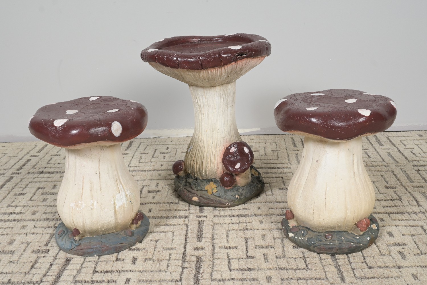 A THREE PIECE CERAMIC TOADSTOOL SETTING (45H X 36DIA CM) (LEONARD JOEL DELIVERY: LRGE)