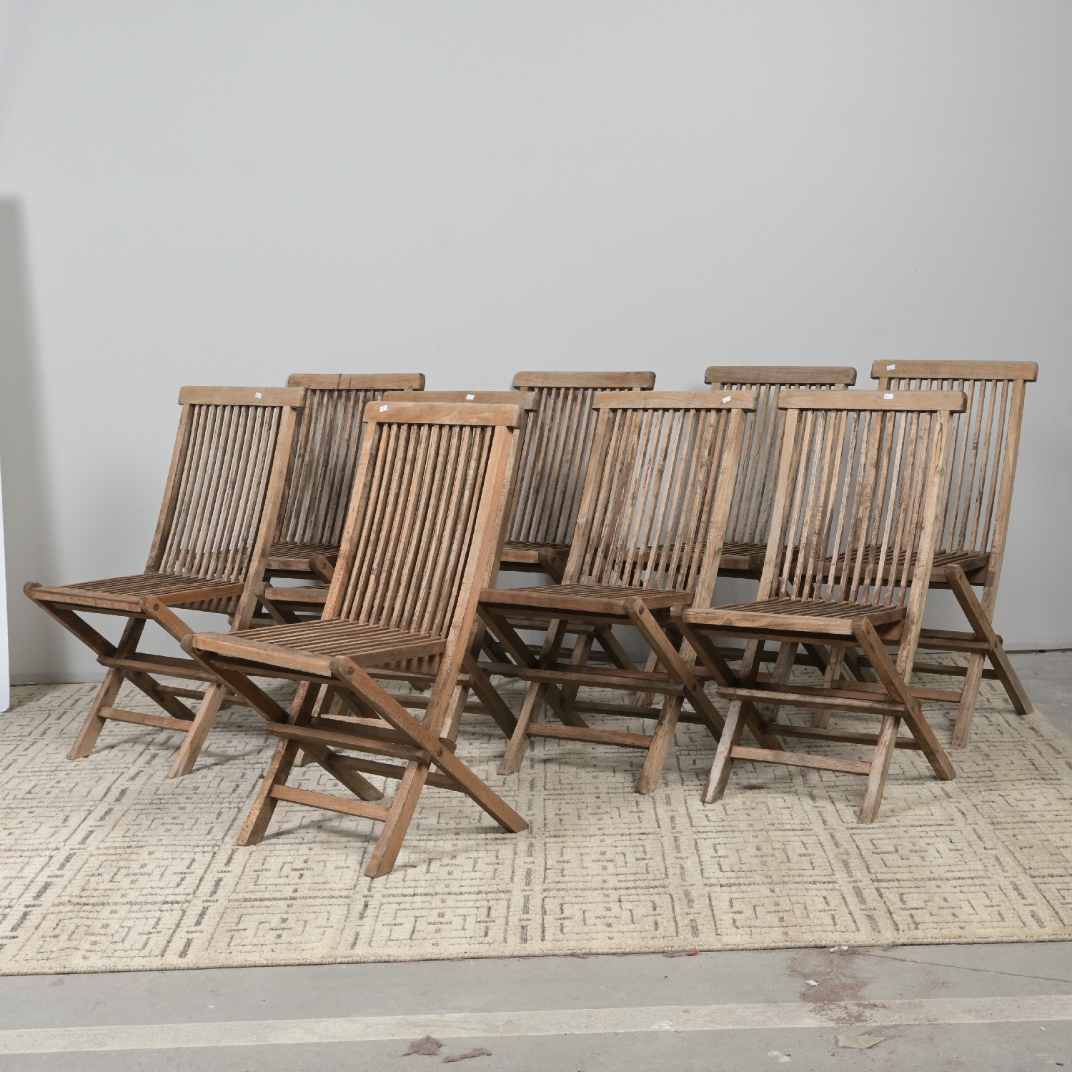 A SET OF TEN TEAK FOLDING OUTDOOR CHAIRS (92H X 47W X 56D CM) (LEONARD JOEL DELIVERY: X-LARGE)