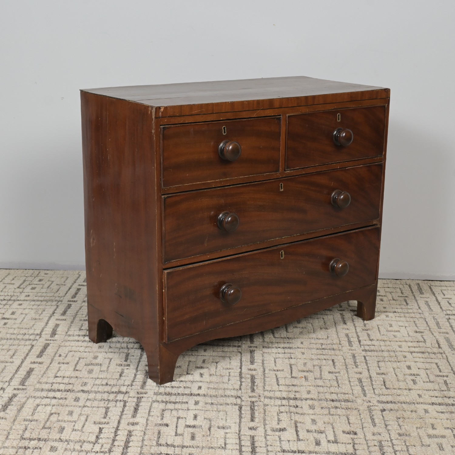 A LATE GEORGIAN MAHOGANY CHEST OF DRAWERS (A/F) (79H X 90W X 46D CM) (LEONARD JOEL DELIVERY: X-LARGE)