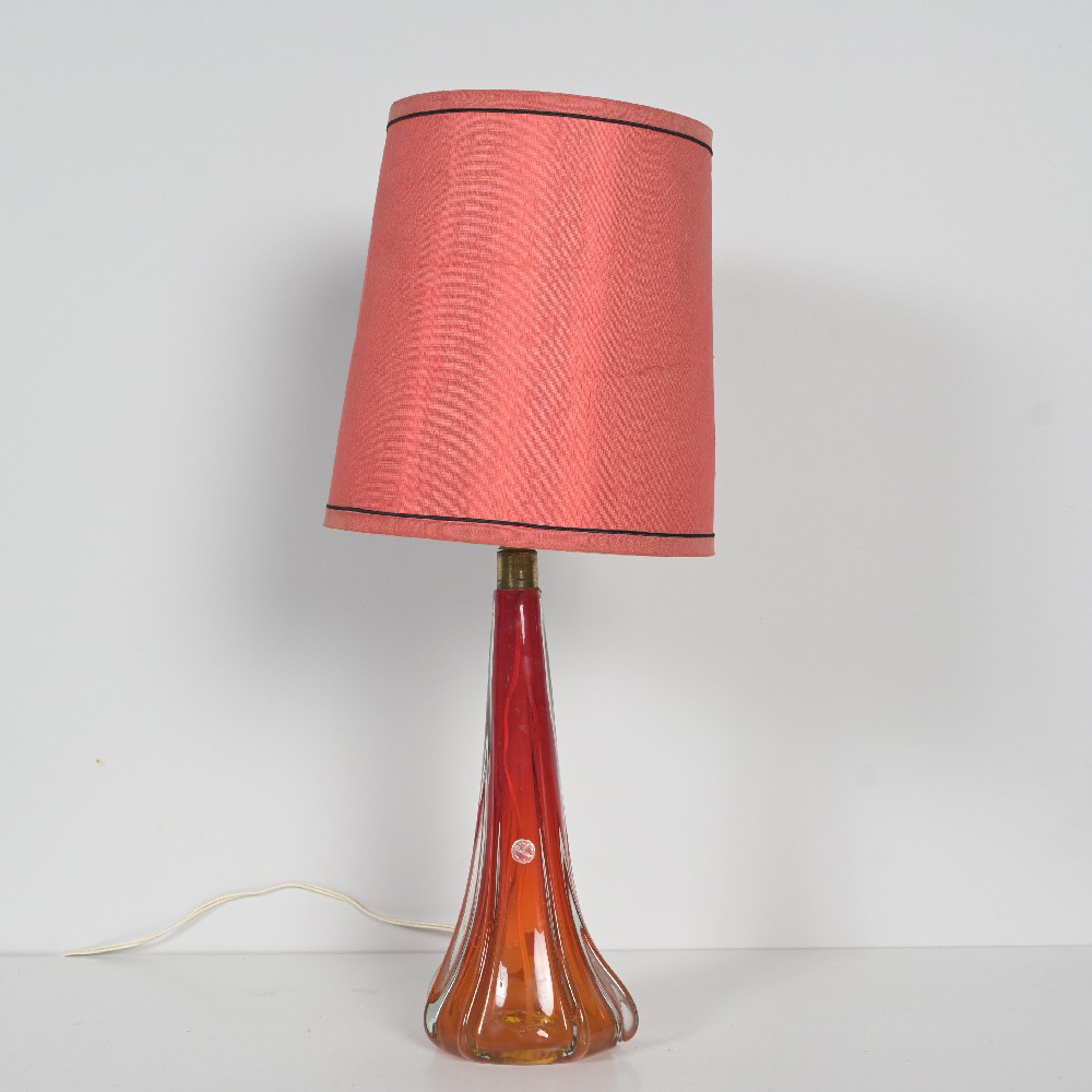 A RED MURANO GLASS TABLE LAMP WITH SHADE (A/F) (68H X 28DIA CM) (LEONARD JOEL DELIVERY: MEDIUM)