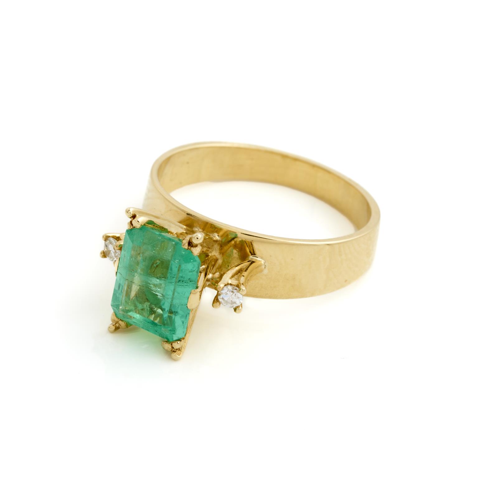 AN EMERALD AND DIAMOND RING IN 18CT GOLD, THE EMERALD WEIGHING 2.05CTS, SIZE Q, 5.8GMS