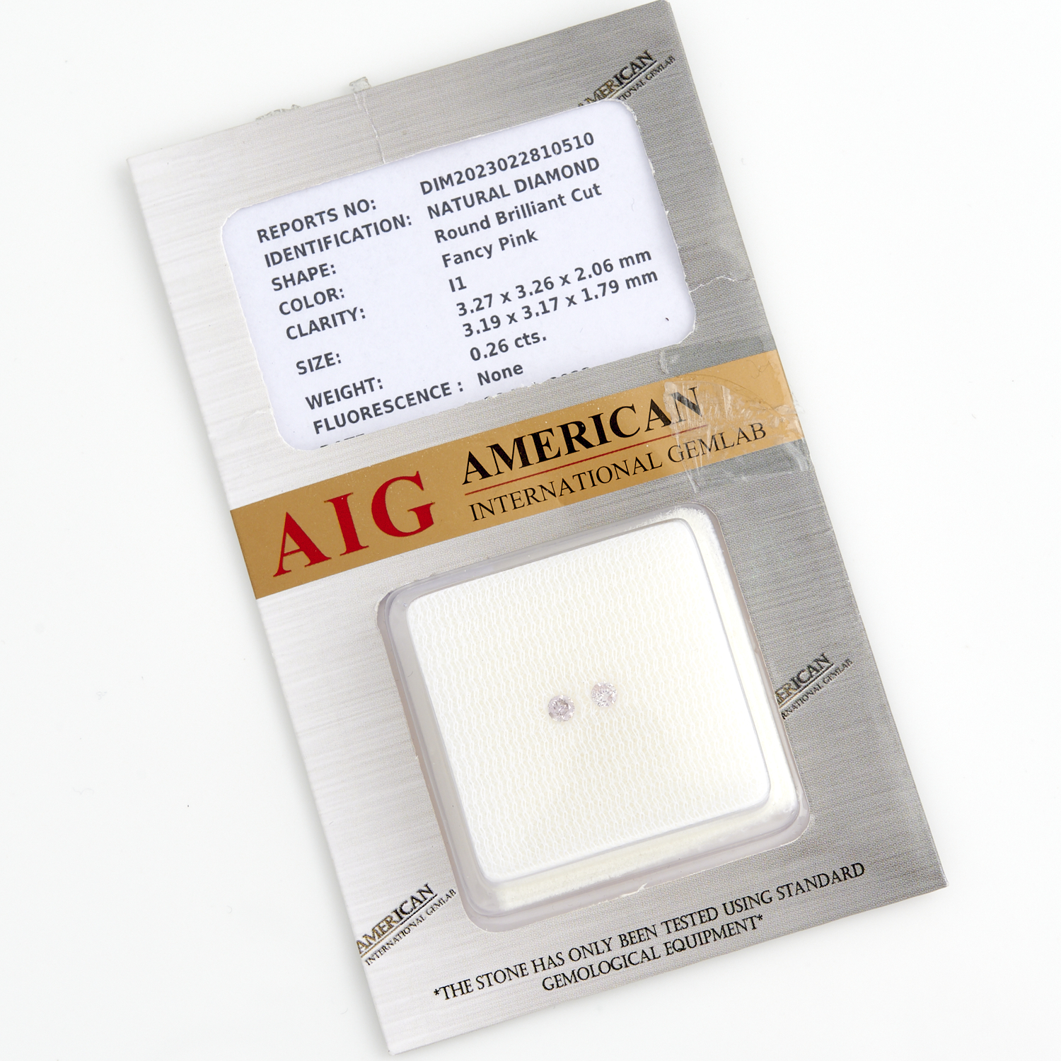 TWO LOOSE NATURAL PINK DIAMONDS, TOGETHER WEIGHING 0.26CTS, ACCOMPANIED BY AN AIG CERTIFICATE STATING COLOUR FANCY PINK, CLARITY I1