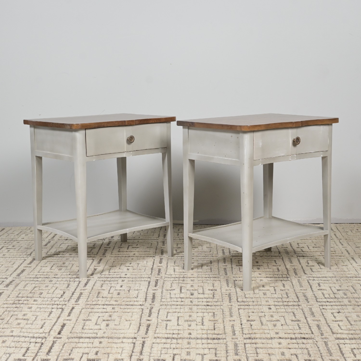 A PAIR OF FRENCH LOUIS XV STYLE BEDSIDE TABLES WITH FERNLEAF CARVING (60H X 70W X 45D CM) (LEONARD JOEL DELIVERY: X-LARGE)