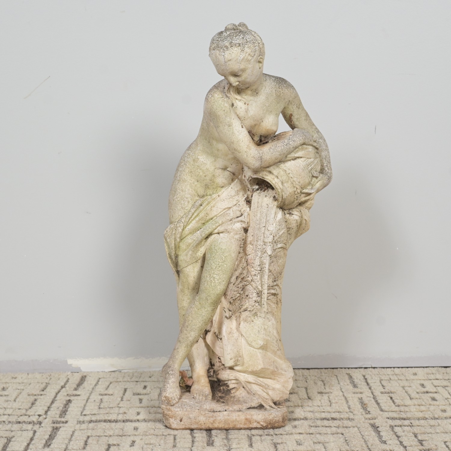 A CONCRETE FIGURE OF A MAIDEN (A/F) (78H CM) (THIS HEAVY ITEM MUST BE REMOVED BY CARRIERS AT THE CUSTOMER'S EXPENSE. LEONARD JOEL STAFF CANNOT ASSIST CARRYING THIS ITEM)