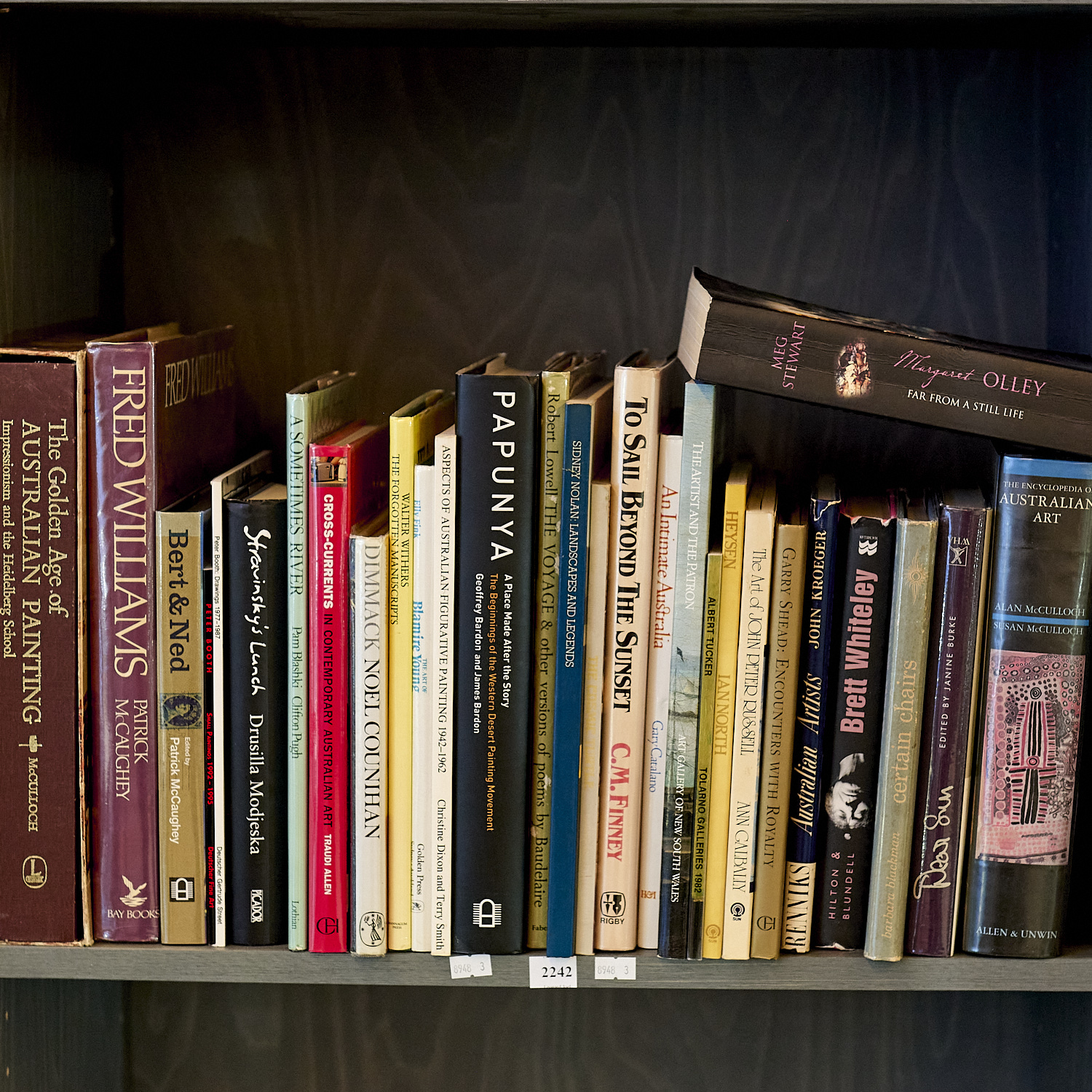 A SHELF OF AUSTRALIAN ART REFERENCE INCLUDING PAPUNYA TULA, FRED WILLIAMS AND SIDNEY NOLAN, LEONARD JOEL DELIVERY SIZE: LARGE