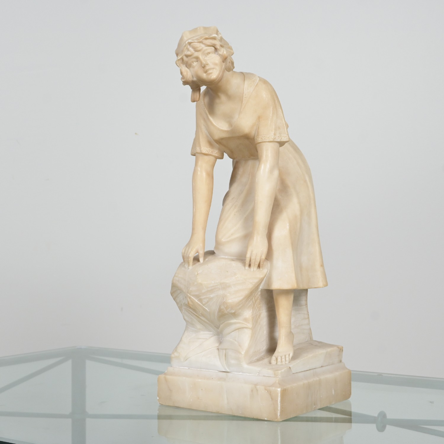 A MARBLE STATUE OF A MAIDEN - SIGNS OF REPAIR (A/F) (52H X 21W X 26D CM) (LEONARD JOEL DELIVERY: LARGE)