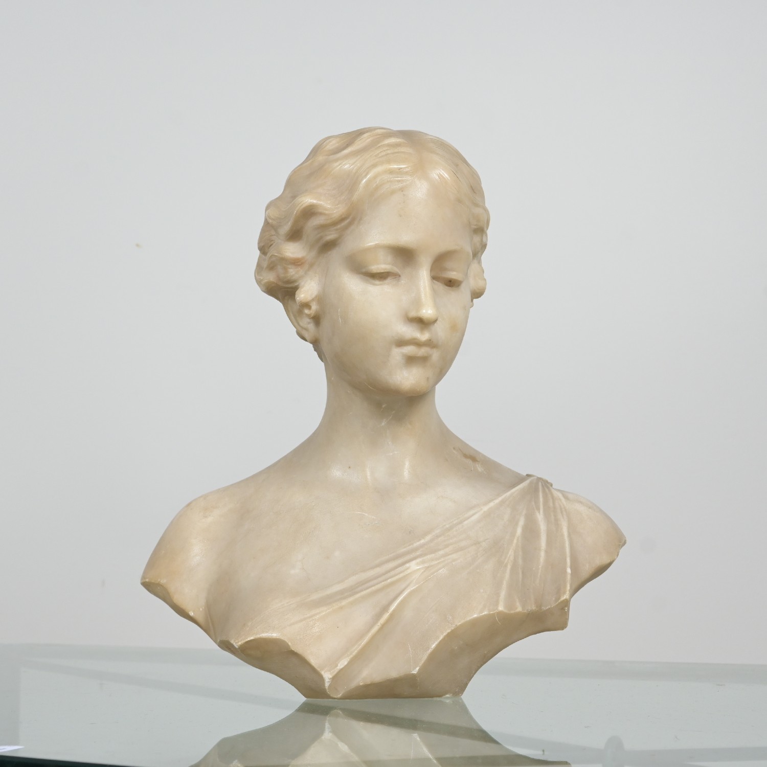 A MARBLE BUST OF A MAIDEN, SIGNED D. ZOI FIRENZE , (40H X 32W X 22D CM) (LEONARD JOEL DELIVERY: LARGE)