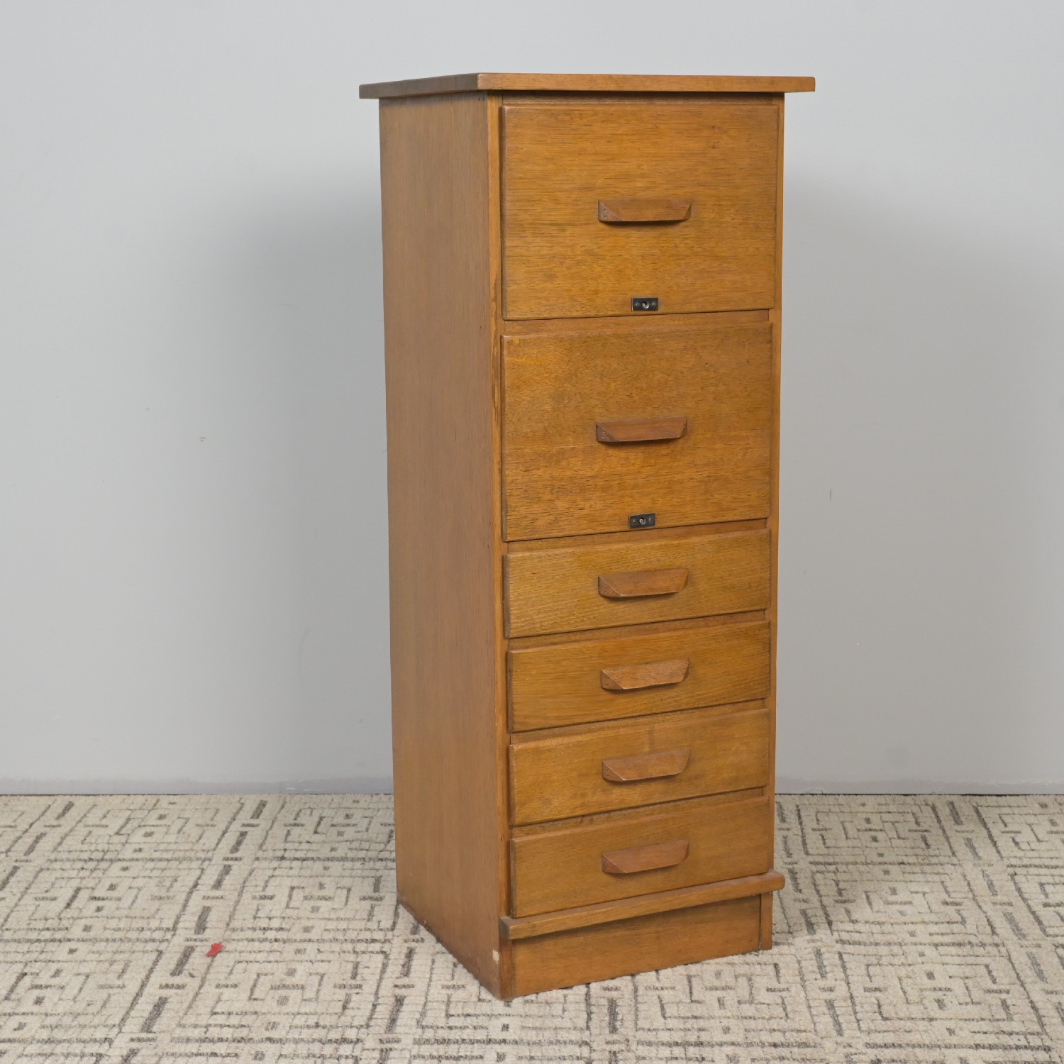 A HARDWOOD FILING CABINET (130H X 51W X 47D CM) (THIS HEAVY ITEM MUST BE REMOVED BY CARRIERS AT THE CUSTOMER'S EXPENSE. LEONARD JOEL STAFF CANNOT ASSIST CARRYING THIS ITEM)