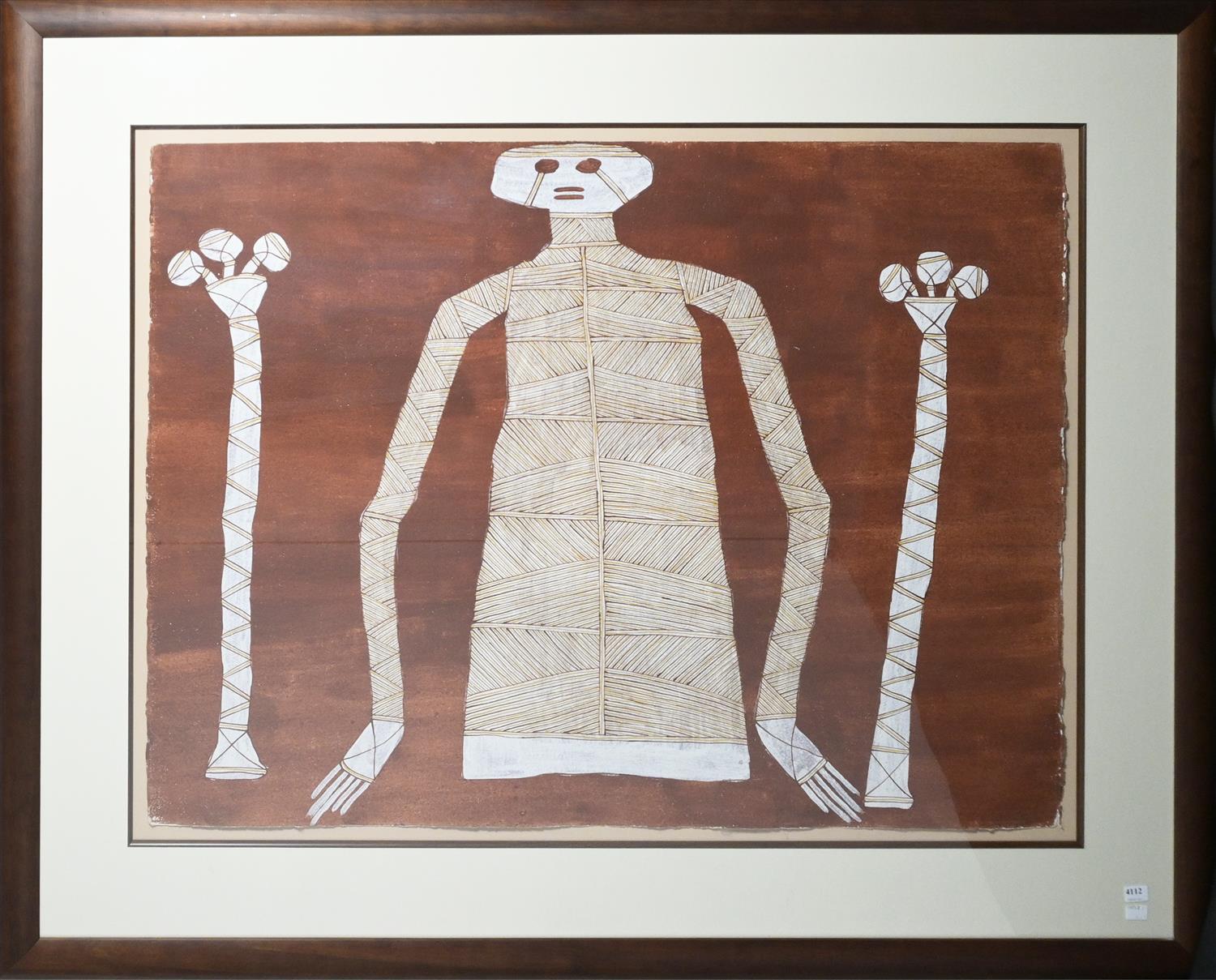 NATALIE GUYMALA, MANKUNG DJANG (SUGARBAG DREAMING), OCHRES ON PAPER, 76.5 X 101CM, FRAME SIZE: 111.5 X 136CM