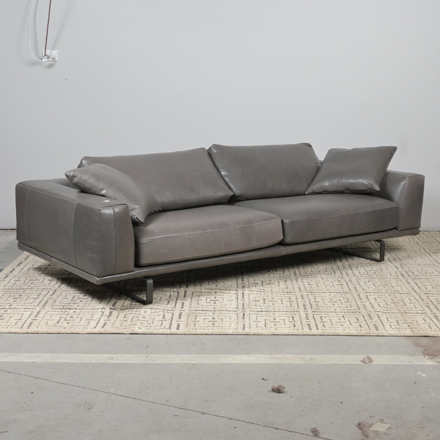 A SUBSTANTIAL NATUZZI LEATHER TWO SEATER SOFA (A/F) (65H X 233W X 104D CM) (THIS HEAVY ITEM MUST BE REMOVED BY CARRIERS AT THE CUSTOMER'S EXPENSE. LEONARD JOEL STAFF CANNOT ASSIST CARRYING THIS ITEM)