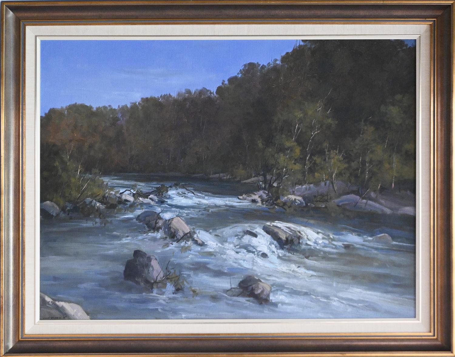 CHRIS KANDIS, BUFFALO RAPIDS, VICTORIA 1988, OIL ON CANVASBOARD, SIGNED AND DATED LOWER LEFT, TITLED VERSO, 74 X 100CM, FRAME SIZE: 94 X 119CM