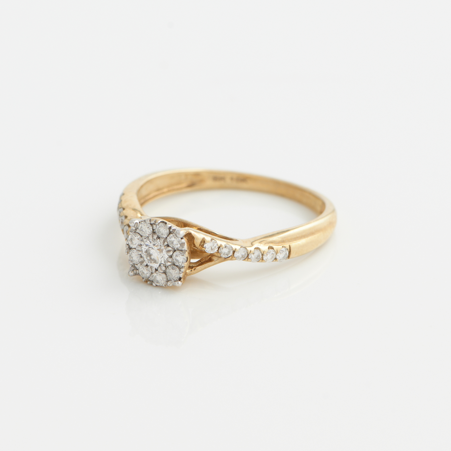 A DIAMOND CLUSTER RING IN 10CT GOLD, THE DIAMONDS TOTALLING 0.28CTS, SIZE M, 1.87GMS