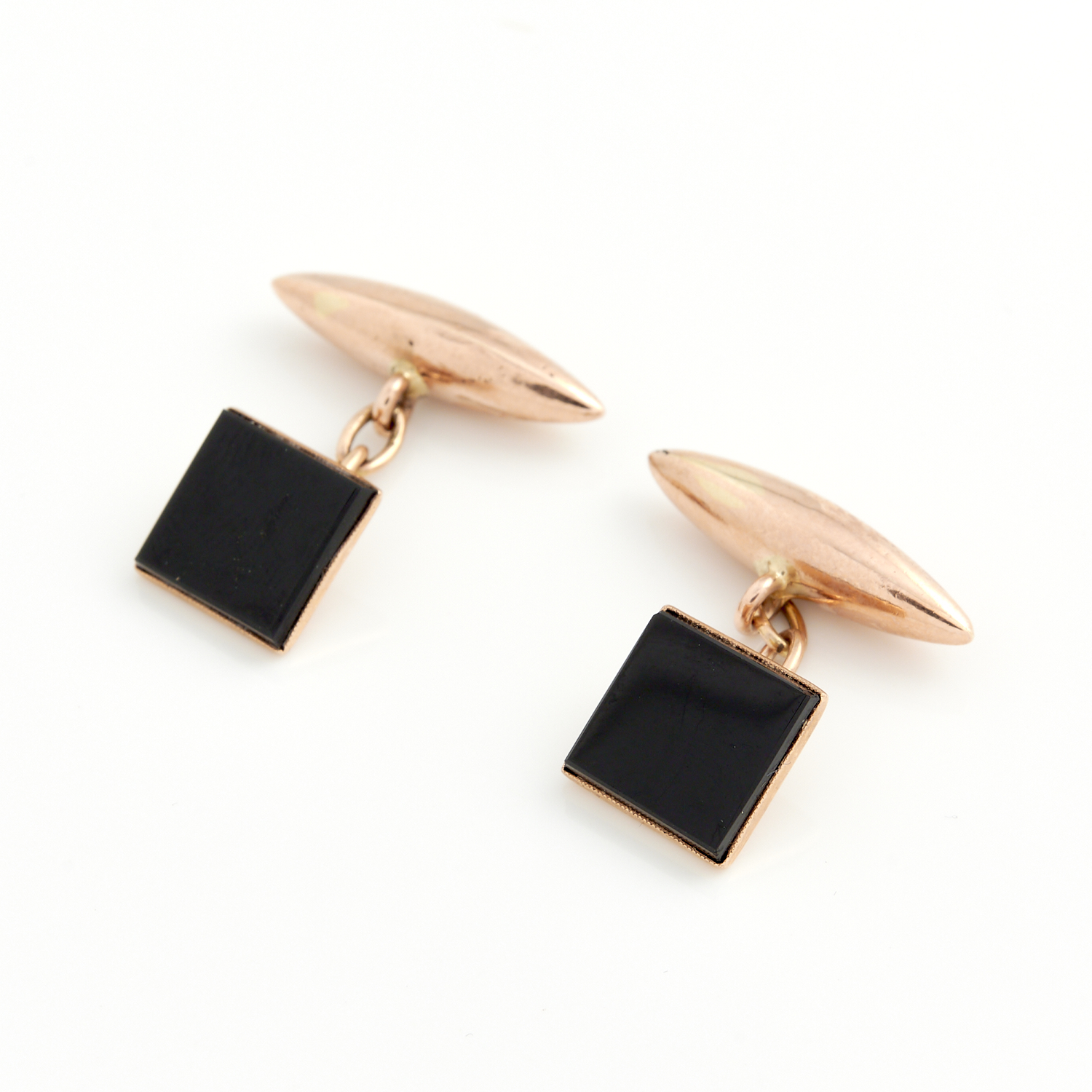 A PAIR OF VINTAGE ONYX CUFFLINKS IN 9CT GOLD, 3.9GMS