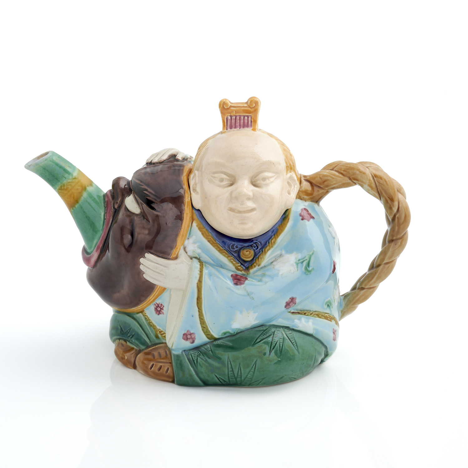 A MINTONS MAJOLICA CHINESE MAN TEAPOT H.13.5CM, LEONARD JOEL DELIVERY SIZE: MEDIUM