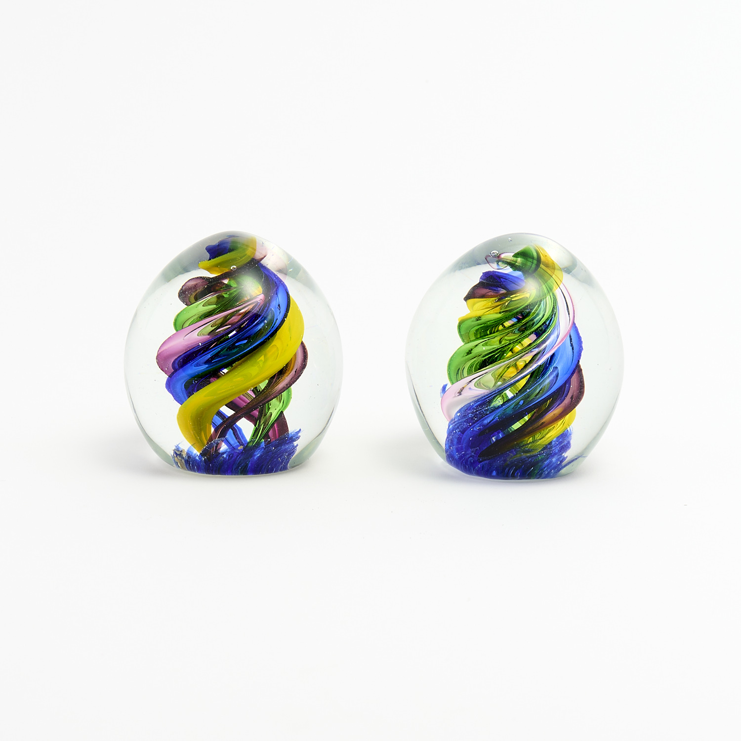 A PAIR OF ART GLASS SWIRL PAPER WEIGHTS H.8CM, LEONARD JOEL DELIVERY SIZE: MEDIUM