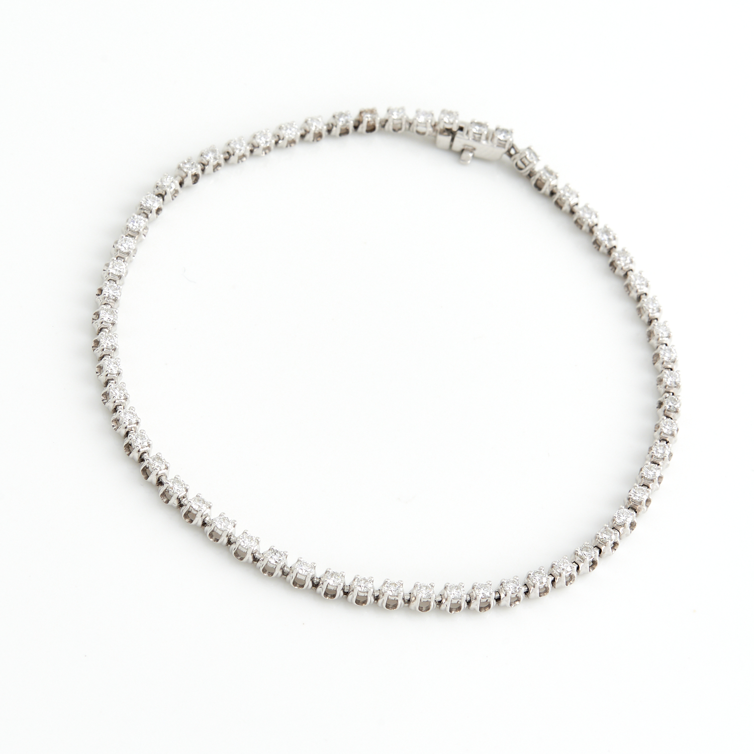 A DIAMOND LINE BRACELET IN 18CT WHITE GOLD, 200MM, 7.2GMS