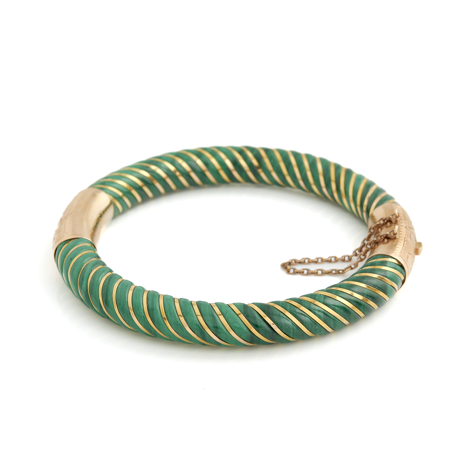 A VINTAGE MALACHITE BANGLE IN 18CT GOLD, INNER DIAMETER APPROXIMATELY 55MM