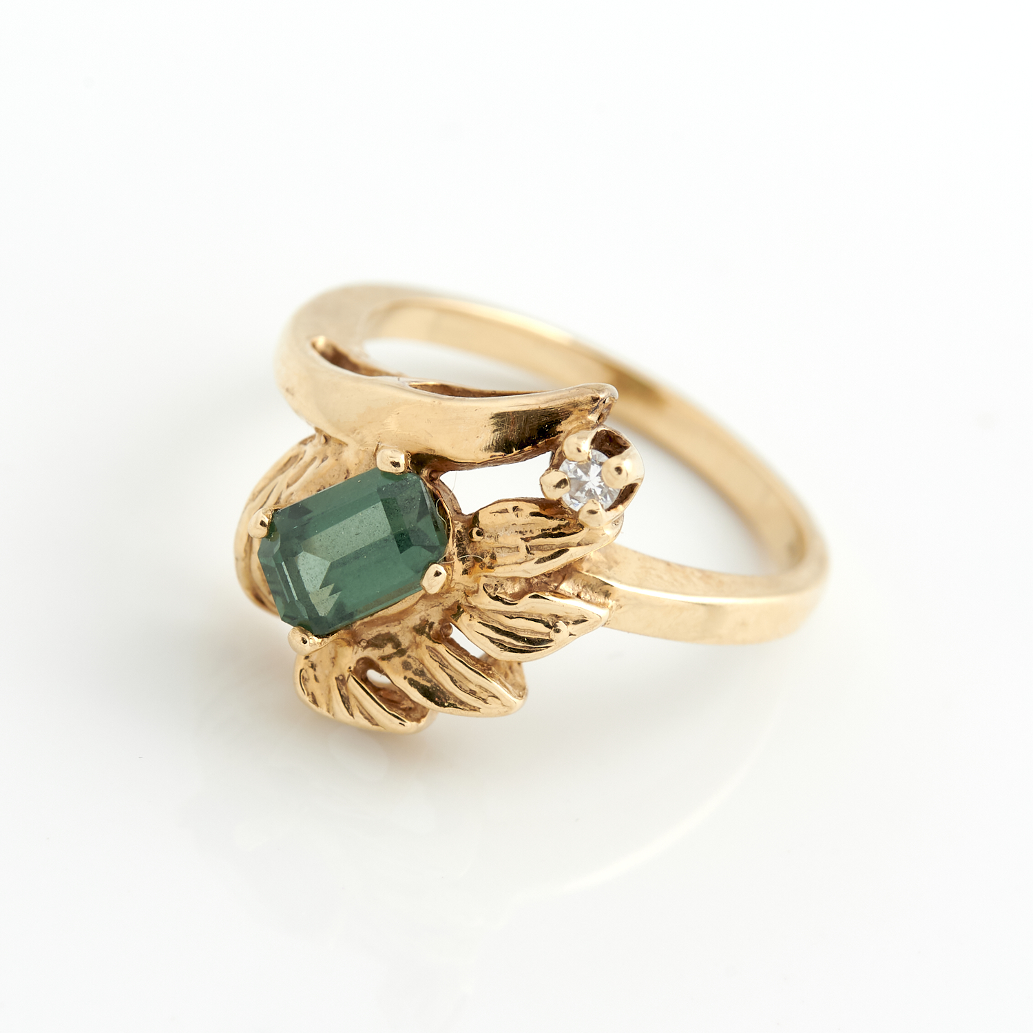 A DIAMOND AND GEM-SET RING IN 14CT GOLD, SIZE L, 3.6GMS