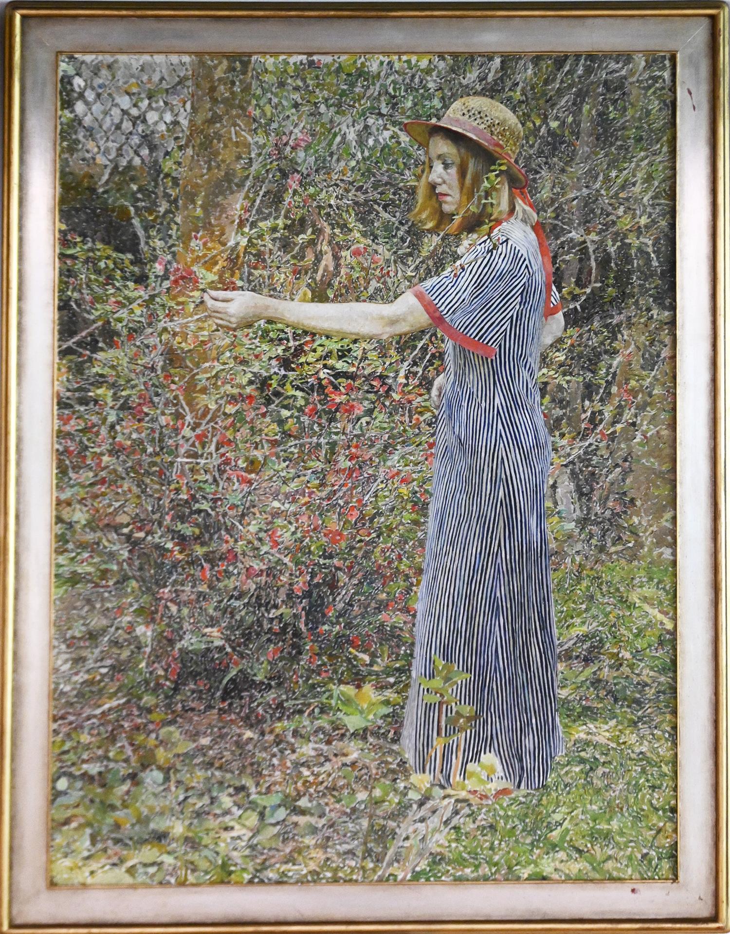 JOHN LENNOX, (DEE-DEE IN THE GARDEN) FROM BLOSSOM SERIES 1979, OIL ON CANVAS, SIGNED UPPER RIGHT, 136 X 101CM, FRAME SIZE: 155 X 120CM