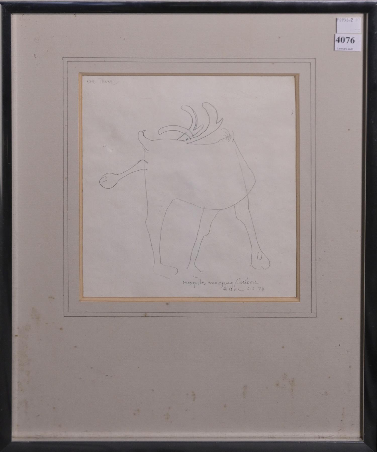 ERIC THAKE, MOSQUITOS ANNOYING CARIBOU 1974, PENCIL ON PAPER, SIGNED UPPER LEFT, TITLED AND DATED LOWER LEFT, 22.5 X 20CM (REVEAL), FRAME SIZE: 46 X 36CM