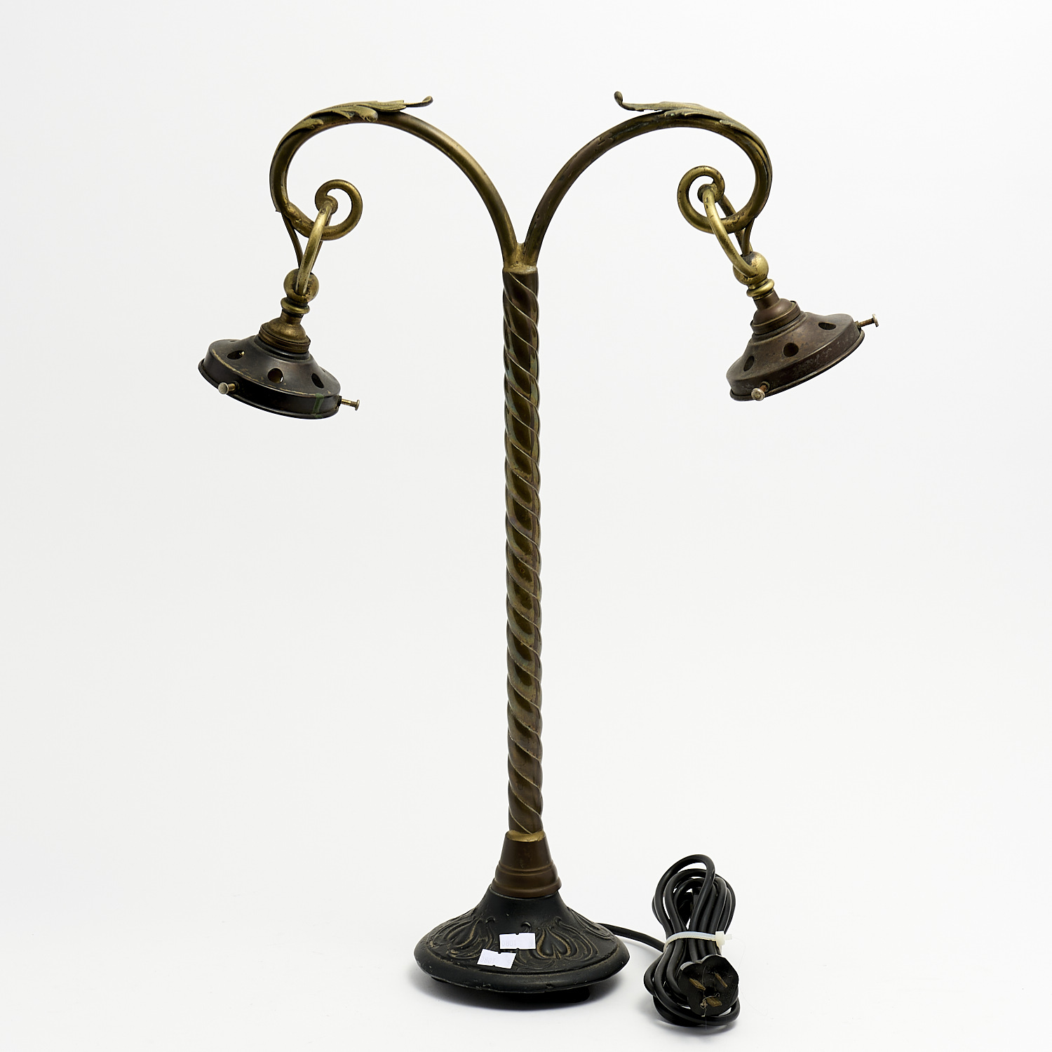 A 19TH CENTURY FRENCH CAST-IRON AND BRASS TWIN-HEADED BANKERS DESK LAMP H.57CM LEONARD JOEL DELIVERY SIZE: MEDIUM