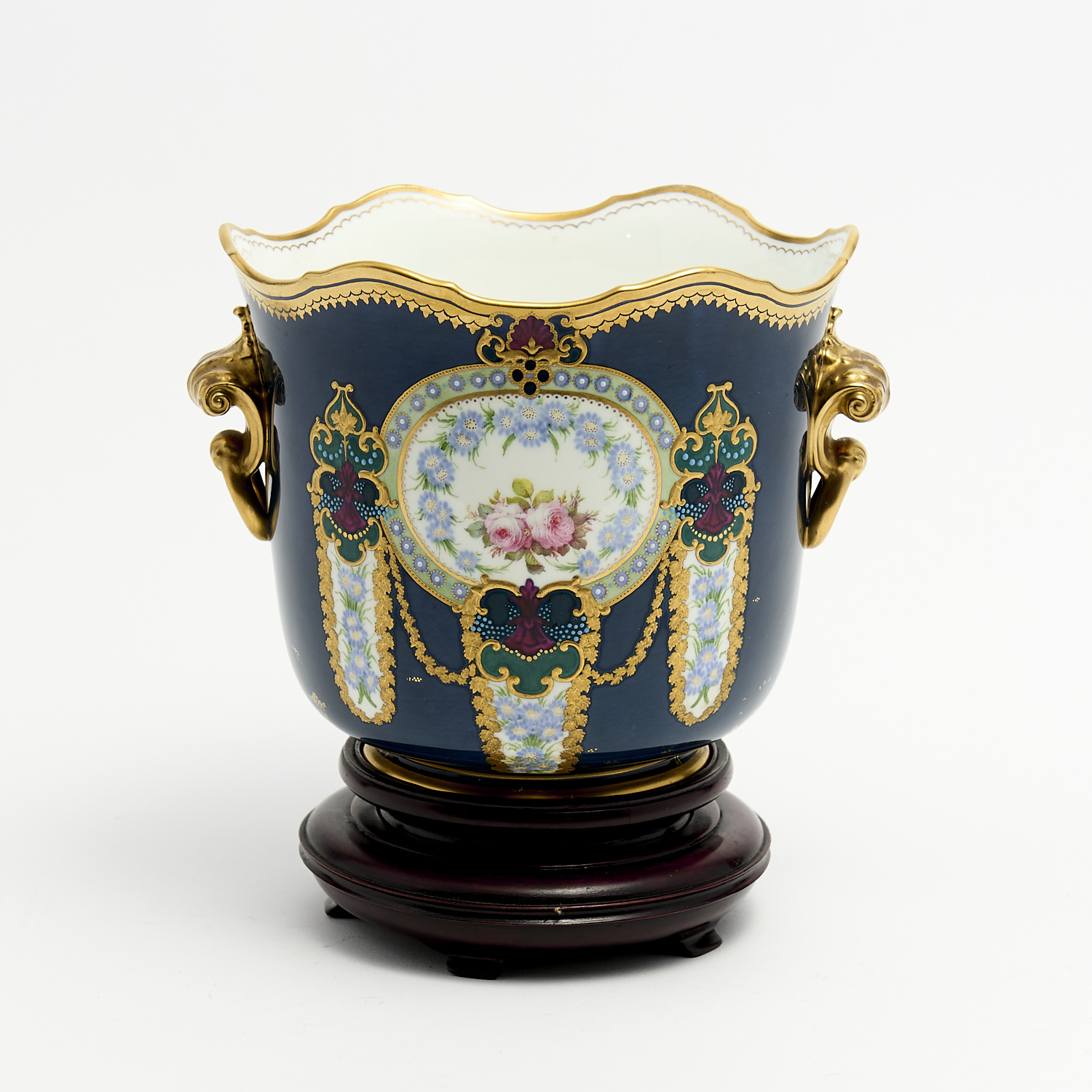 A HANDPAINTED ROYAL CROWN DERBY TWIN HANDLED PLANTER/ICE BUCKET H.20CM, LEONARD JOEL DELIVERY SIZE: MEDIUM