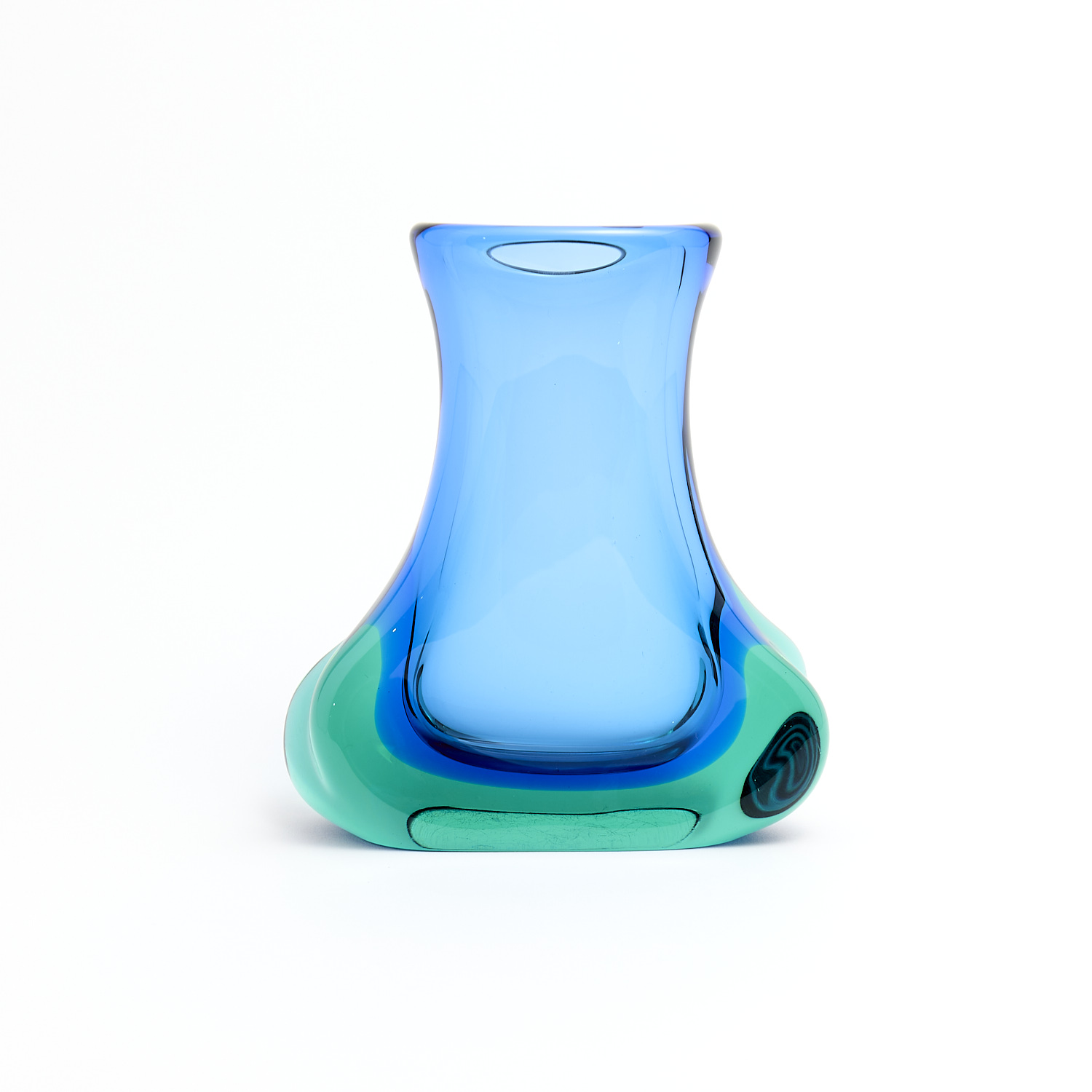 A MURANO SEGUSO STYLE CASED GREEN AND BLUE GLASS VASE H.21.5CM, LEONARD JOEL DELIVERY SIZE: MEDIUM