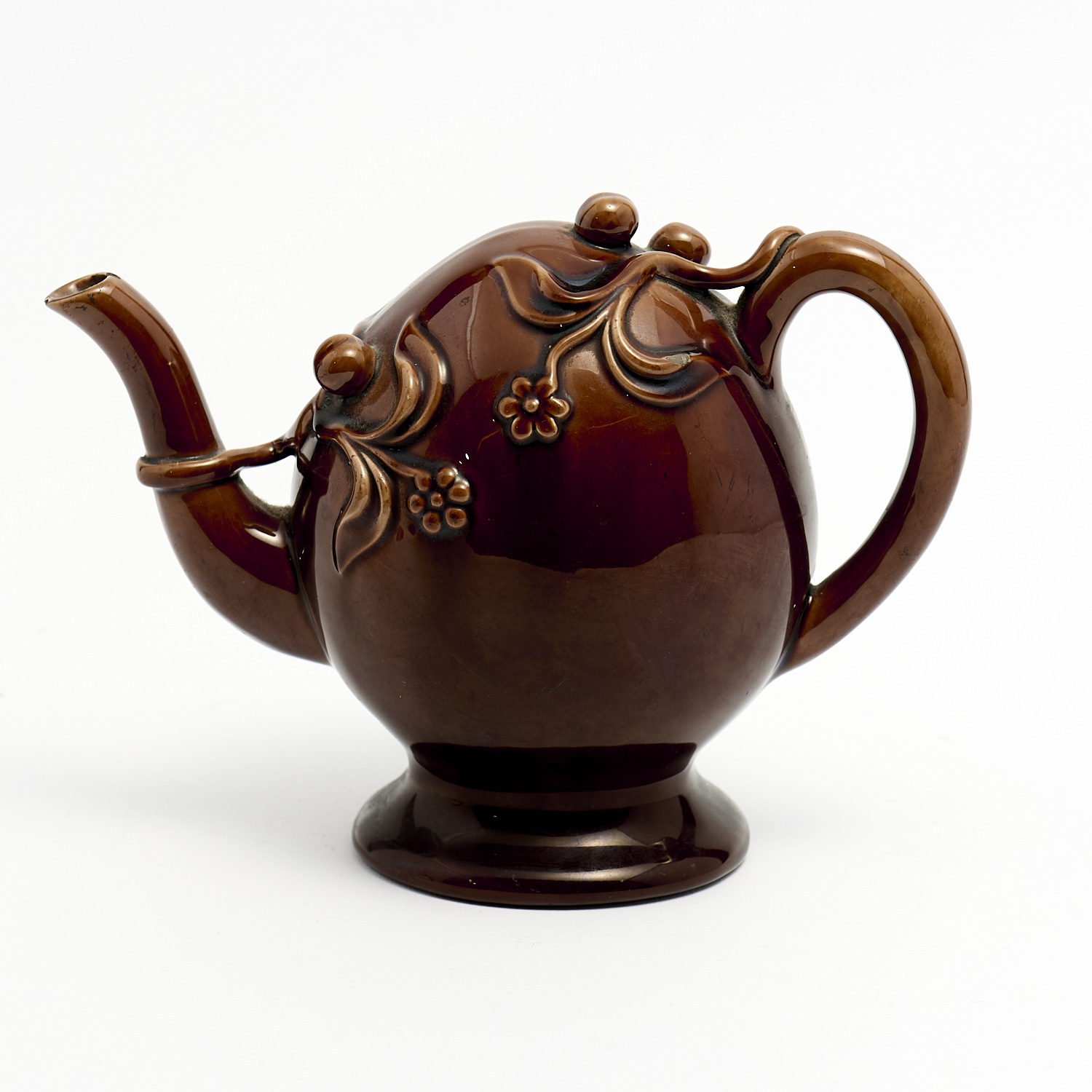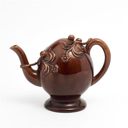 A BROWN GLAZED CADOGAN TYPE TEAPOT IN THE MANNER OF COPELAND AND GARRETT H.17.5CM, LEONARD JOEL DELIVERY SIZE: SMALL