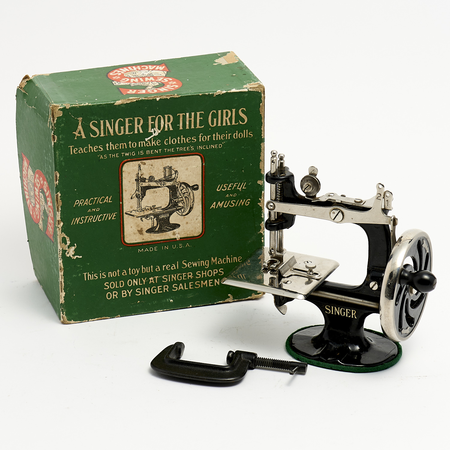 AN ORIGINAL CASED SINGER TABLE TOP SEWING MACHINE WITH ORIGINAL DESKTOP CLAMP H.16.5CM, LEONARD JOEL DELIVERY SIZE: MEDIUM