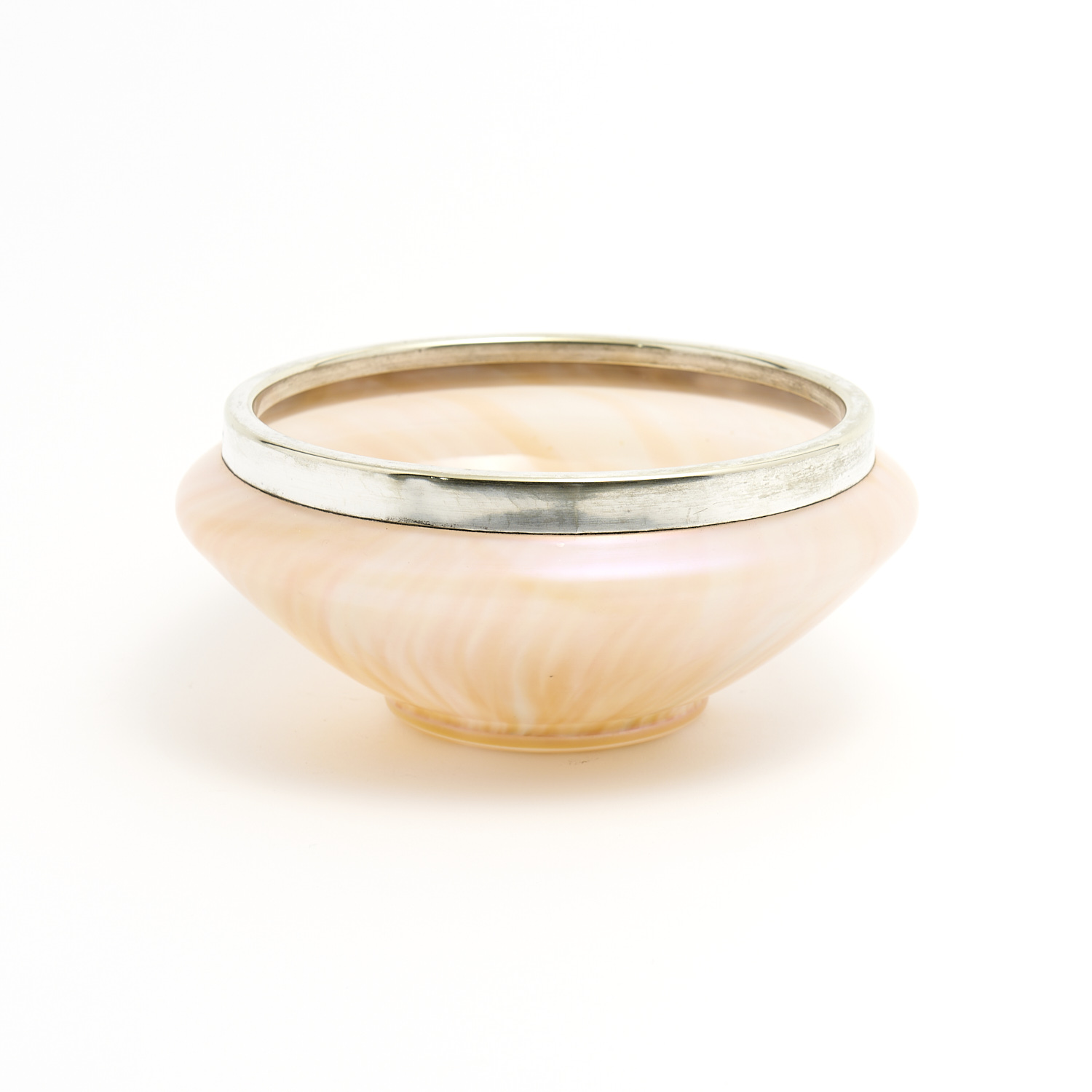 AN ART NOUVEAU LOETZ SILVER PLATE MOUNTED GLASS BOWL DIA.23CM, LEONARD JOEL DELIVERY SIZE: MEDIUM